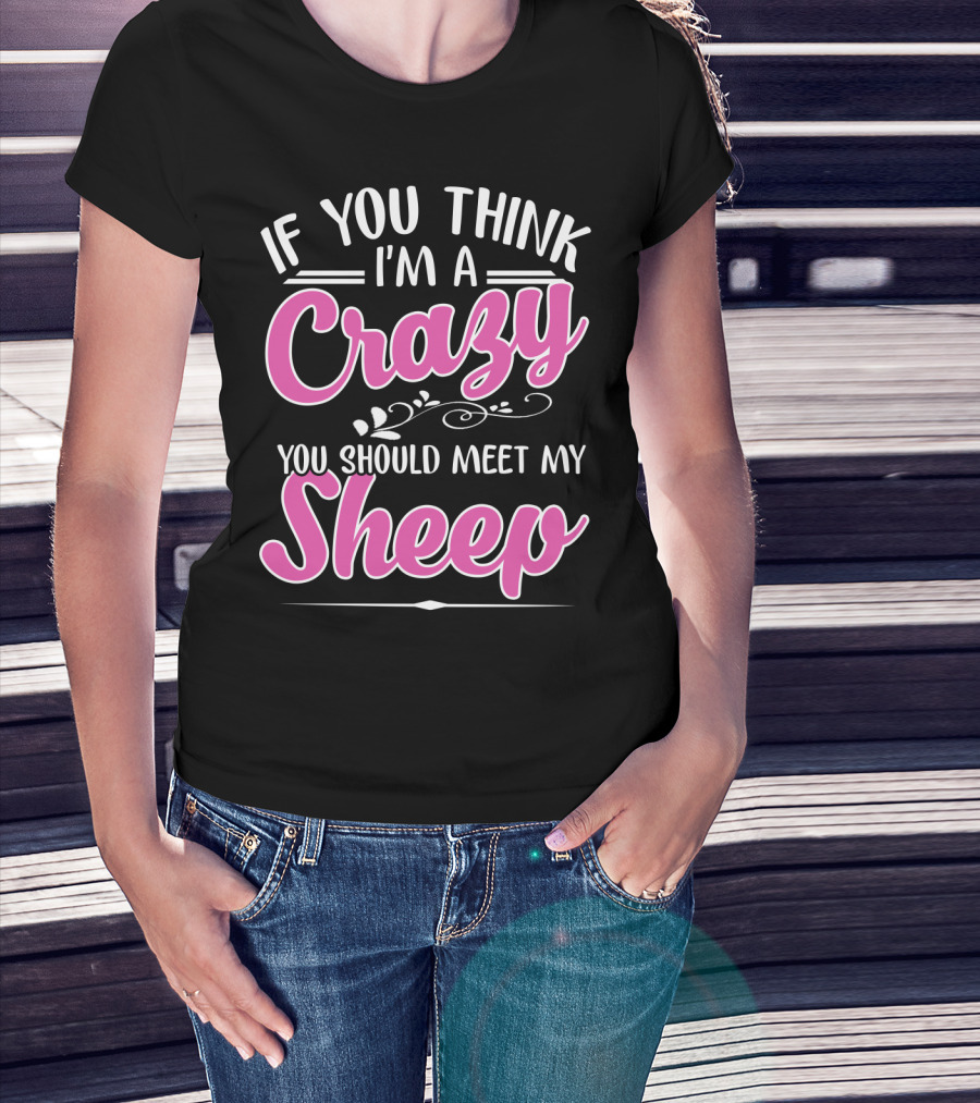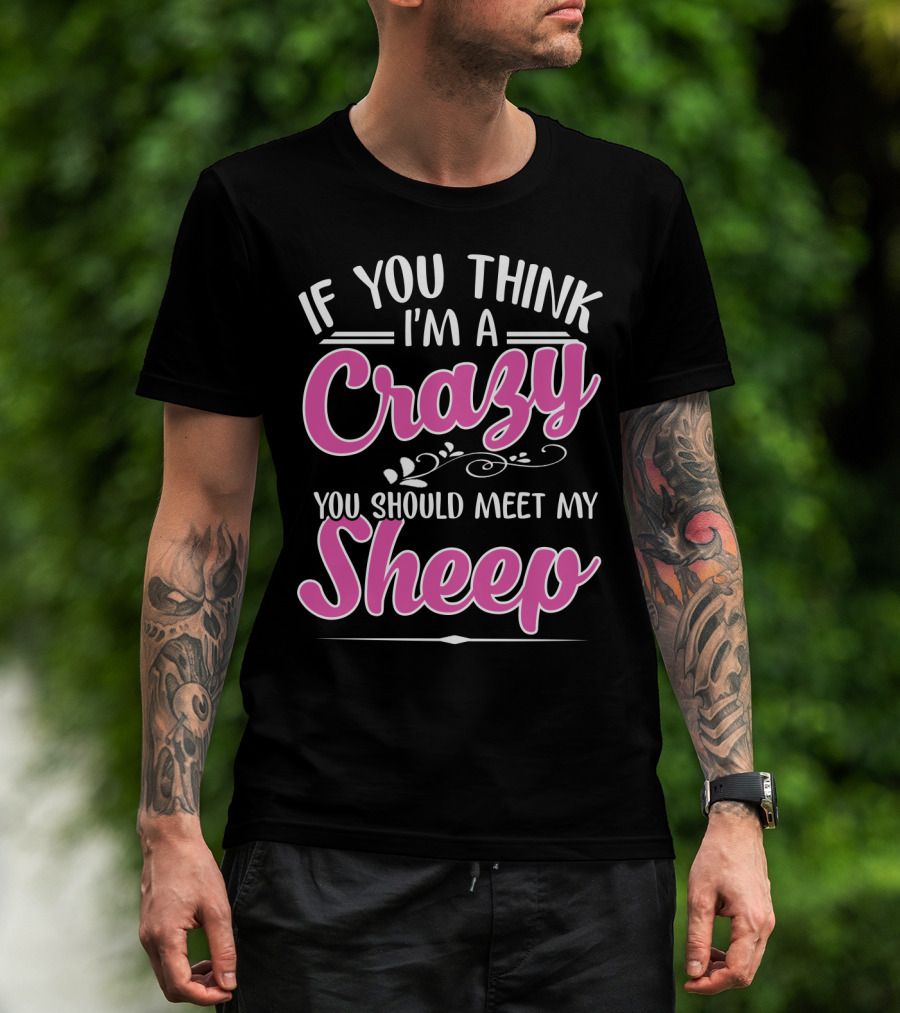 If You Think I'm A Crazy You Should Meet My Sheep Playful Text T-Shirt