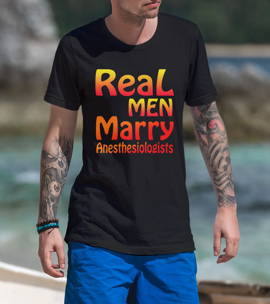 Real Men Marry Anesthesiologists Bold Gradient Text T-Shirt