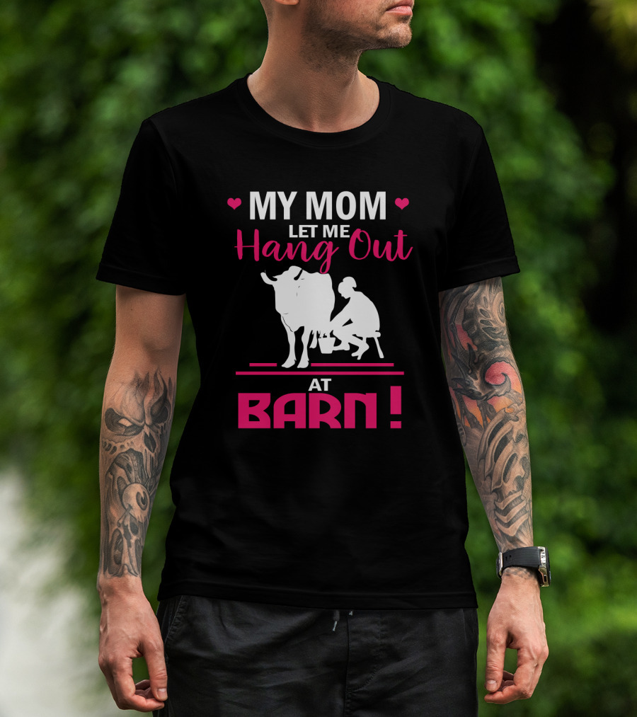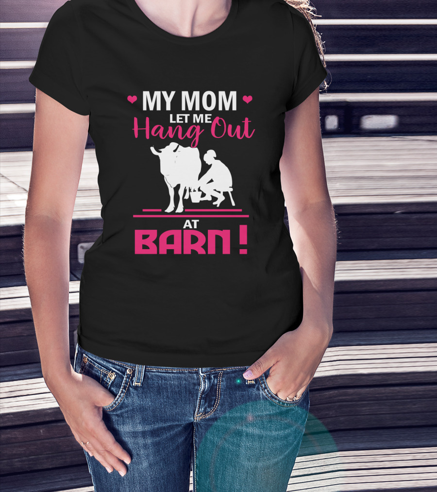My Mom Let Me Hang Out At Barn Cow Milking Farm Girl T-Shirt