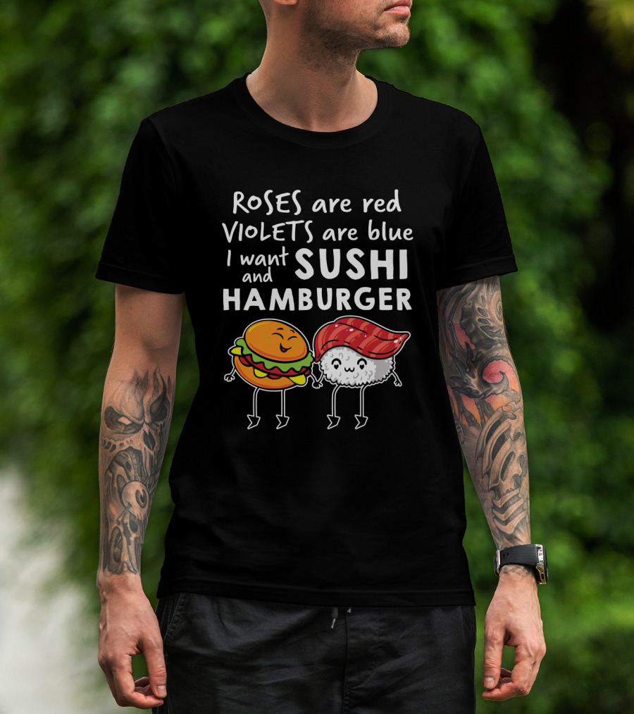 Roses Are Red Violets Are Blue I Want Sushi And Hamburger Fun Cartoon Characters T-Shirt