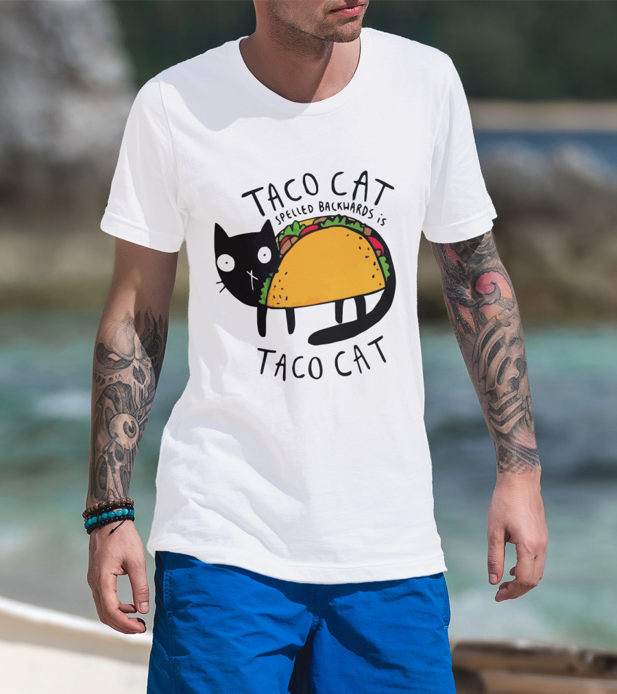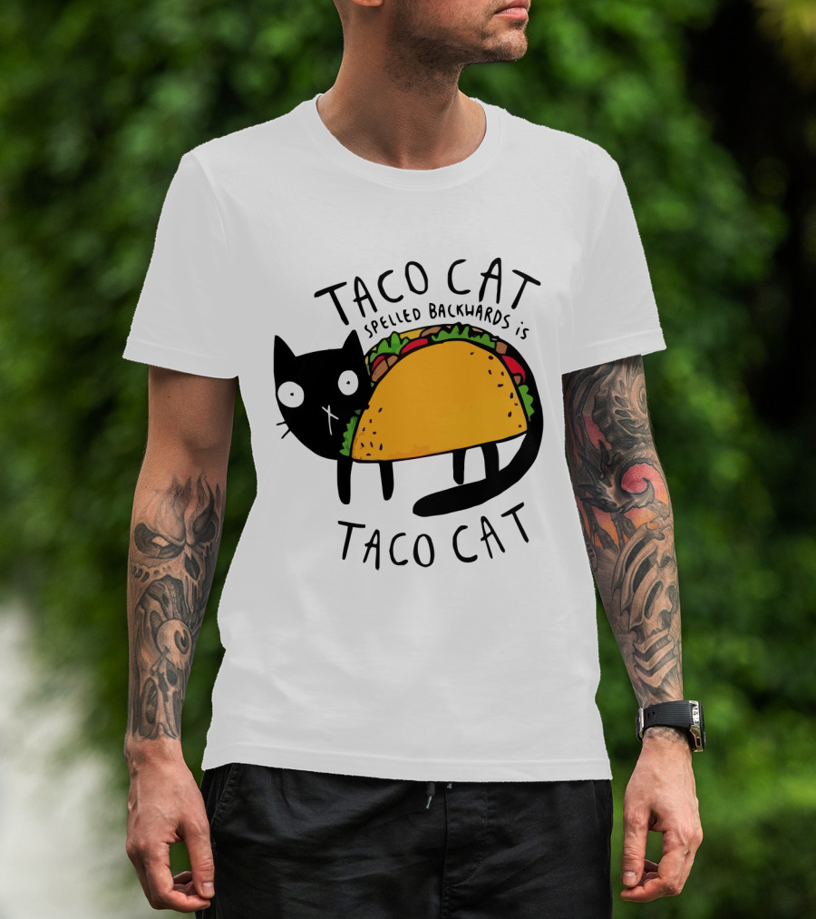 The Taco Cat Spelled Backwards Is Taco Cat Funny Tacos Tacocat T-shirt is designed for everyday wear and a consistent fit. Fabric is pre-shrunk ring-spun cotton with durable stitching. See the size chart below for exact measurements.