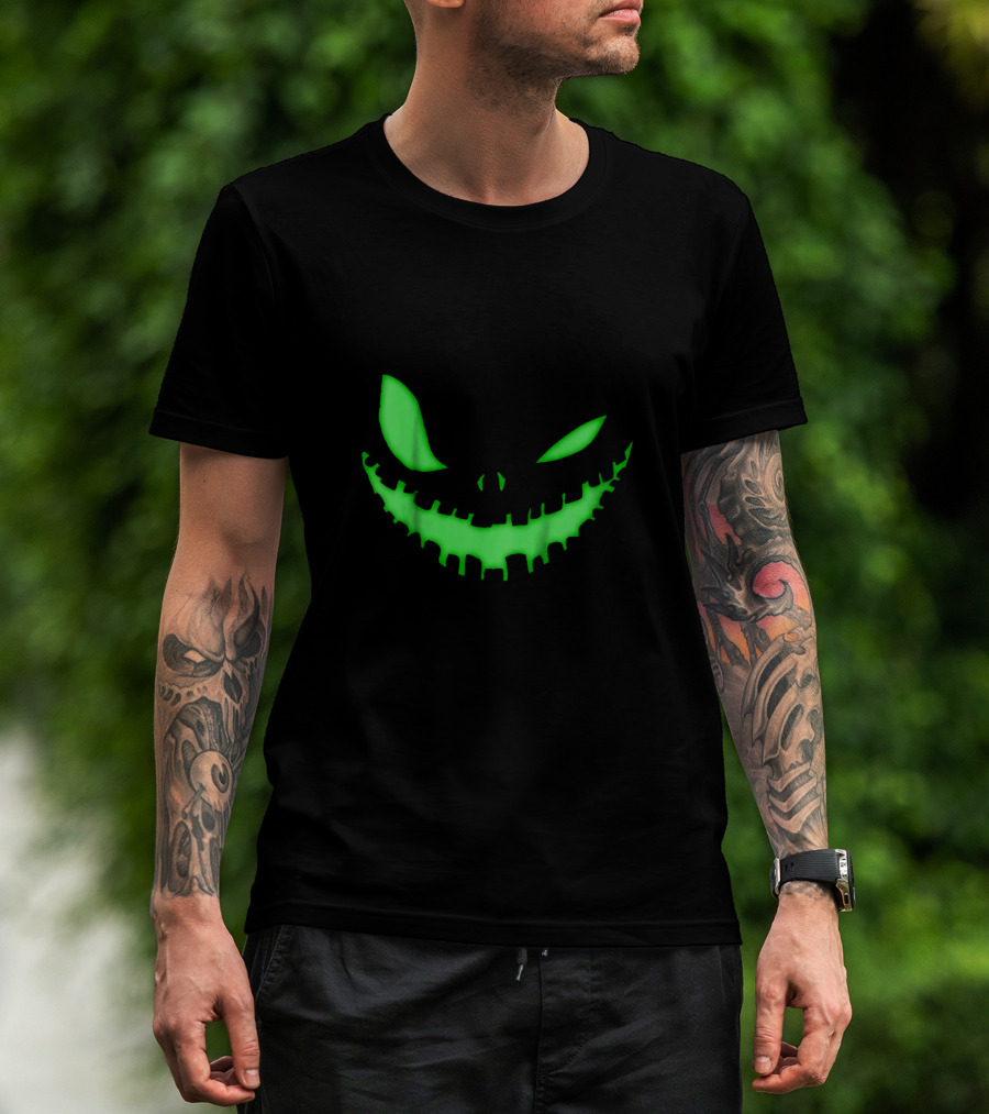 Spooky Face Halloween Dark Green Glow Creepy Smile T-Shirt