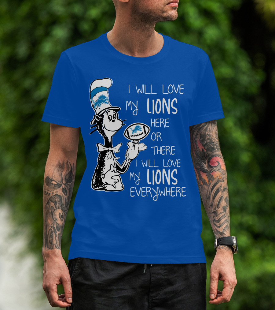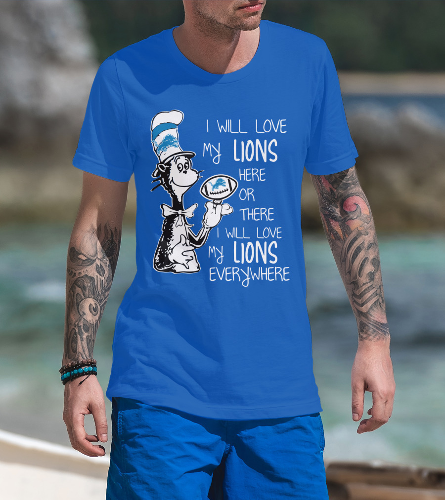 Lions Cat In The Hat I Will Love My Lions Everywhere Football Fan T-Shirt