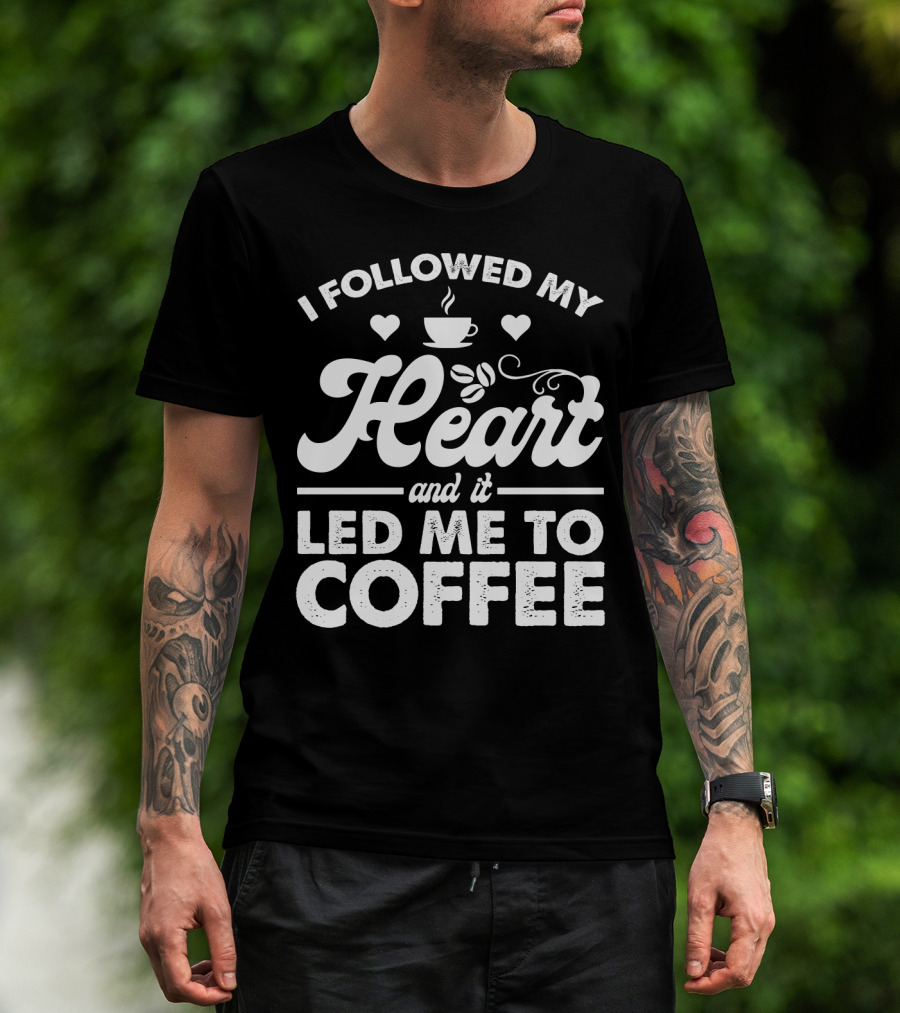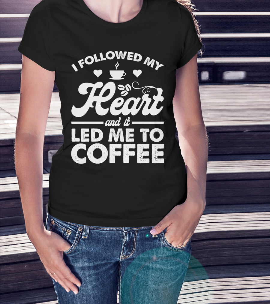 I Followed My Heart Coffee Lover's Quote With Hearts And Cup T-Shirt