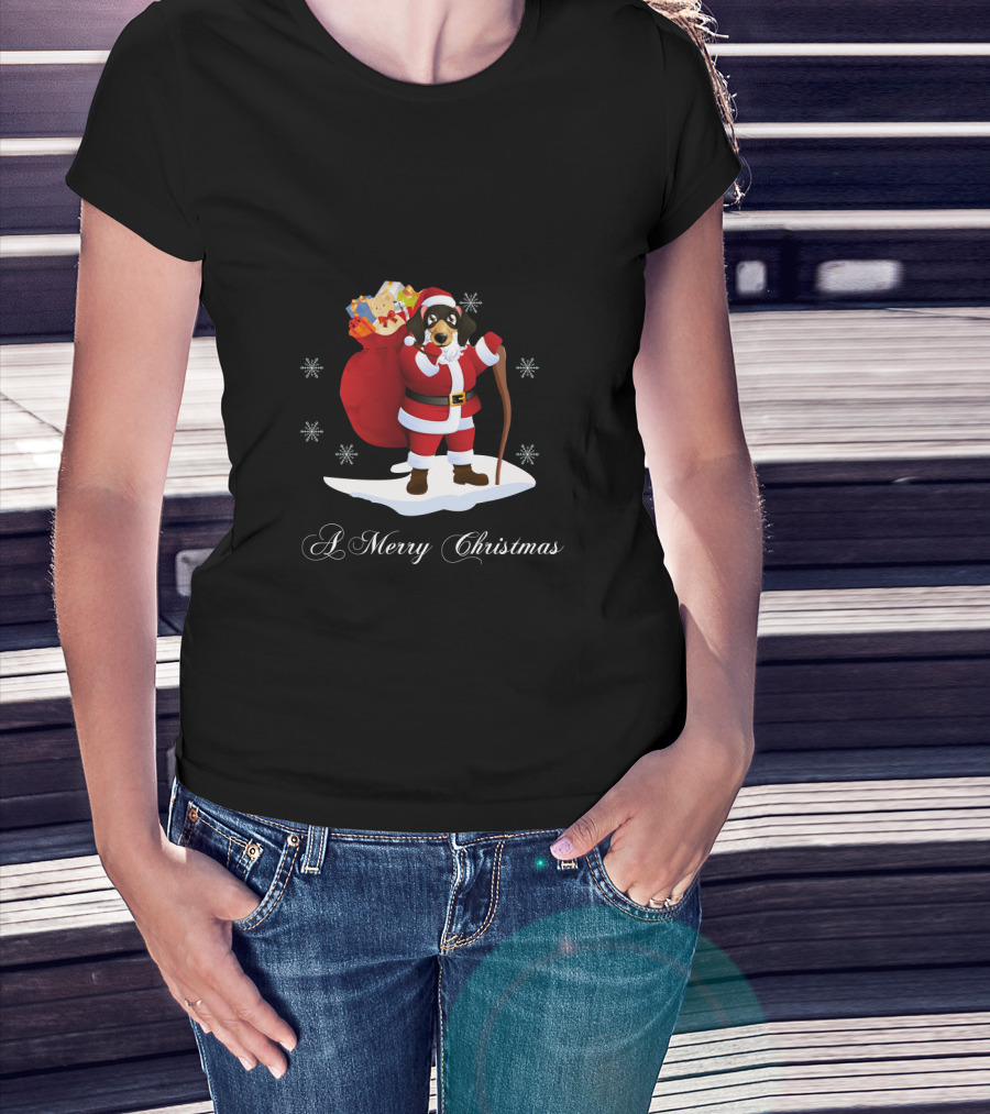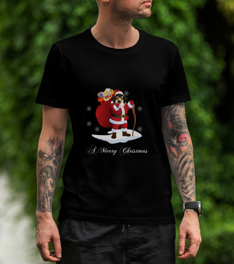 Santa Dachshund With Gifts And Snowflakes For A Merry Christmas T-Shirt