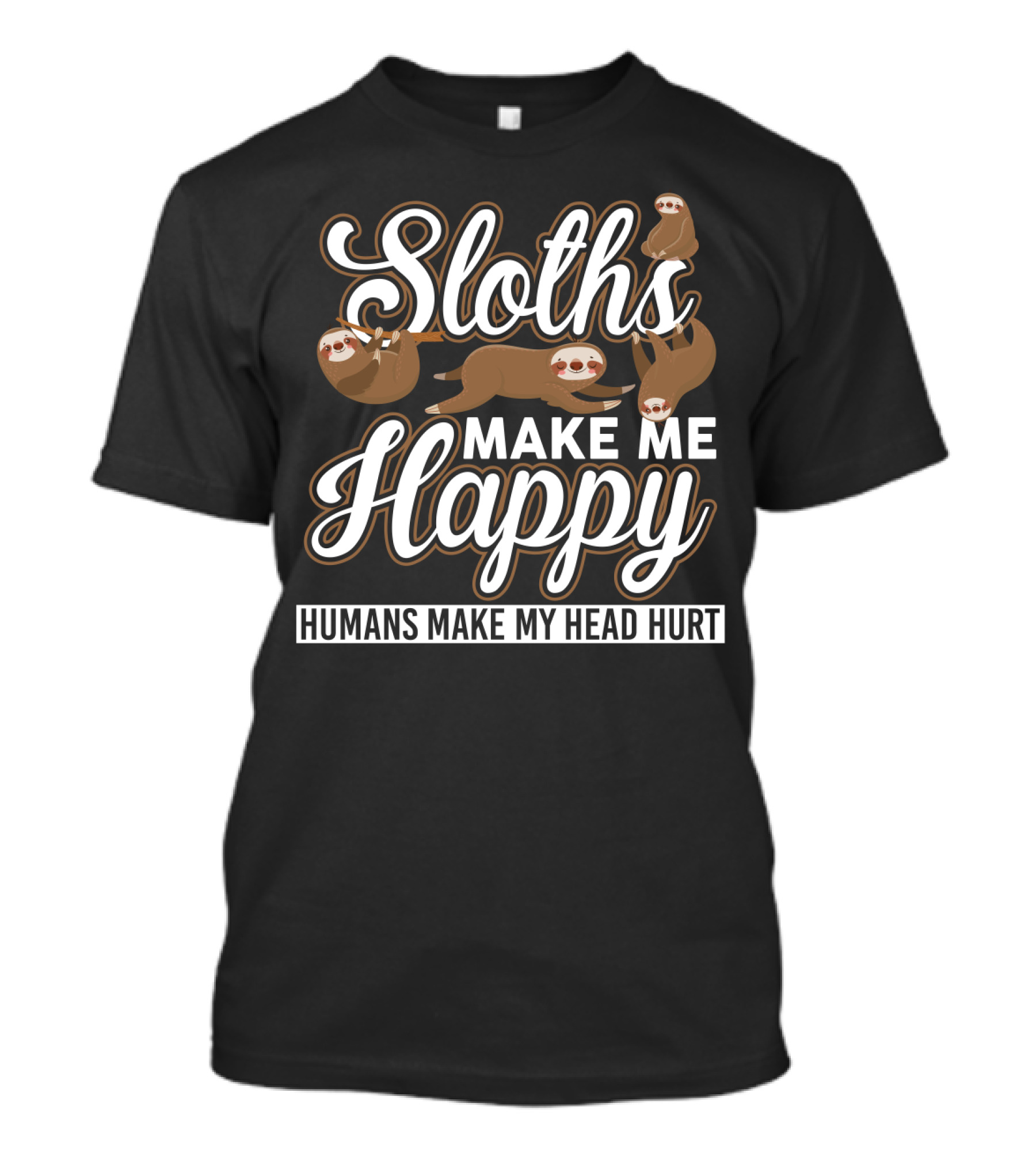 Sloths Make Me Happy Humans Make My Head Hurt Funny Sloth Sarcasm T-Shirt
