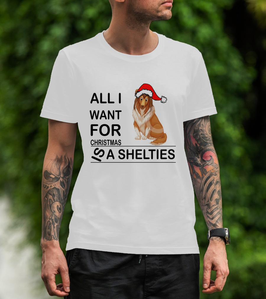 All I Want For Christmas Is A Shelties Dog Wearing Santa Hat T-Shirt