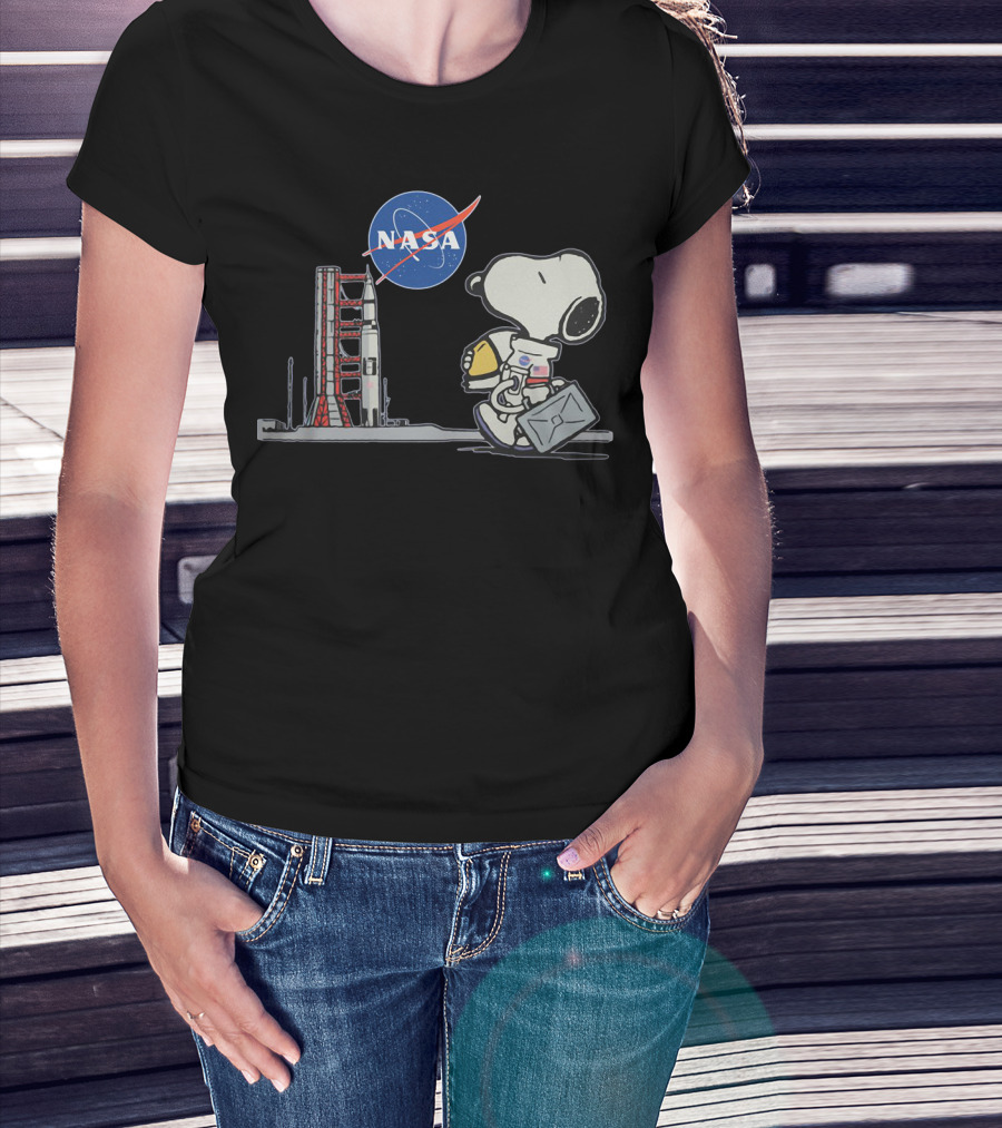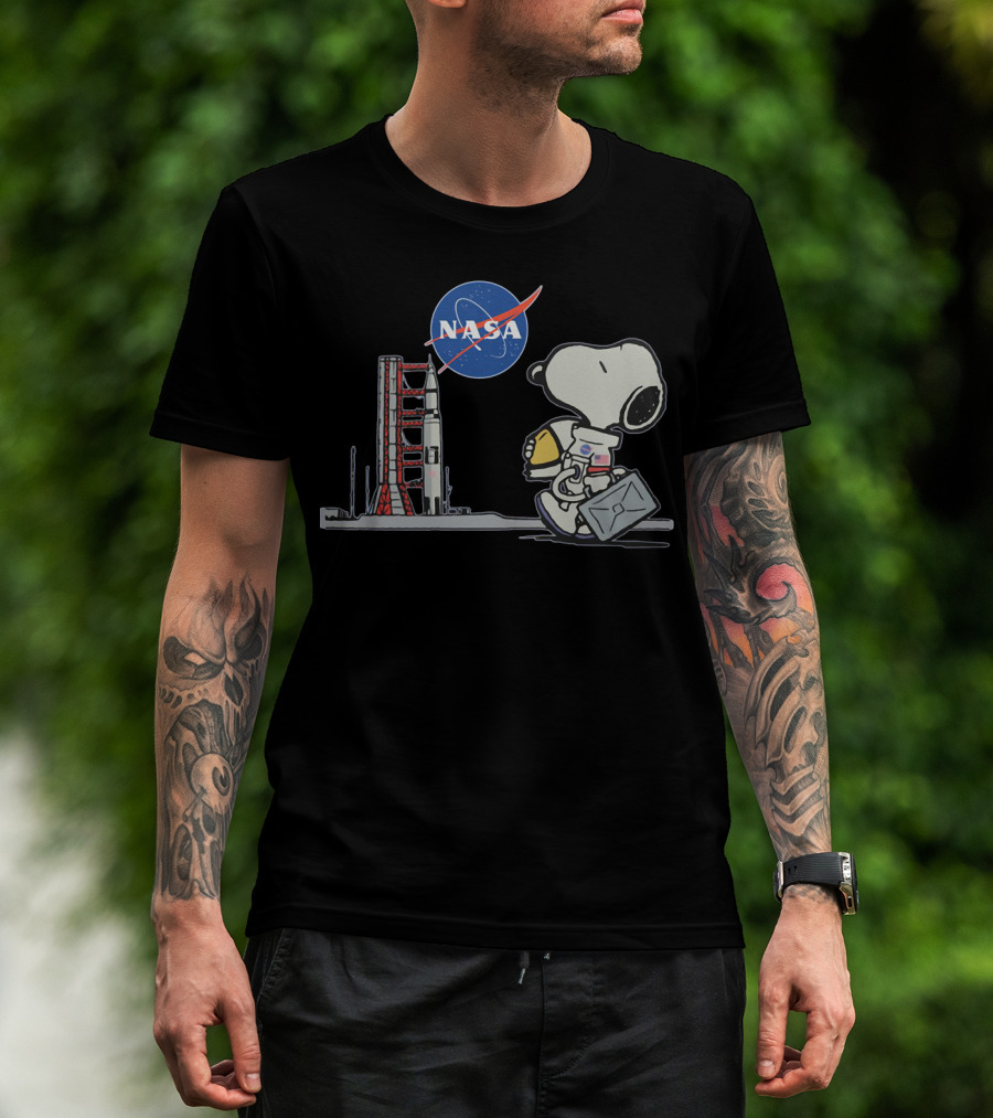 NASA Snoopy Astronaut Moon Mission Graphic With Rocket And Helm T-Shirt