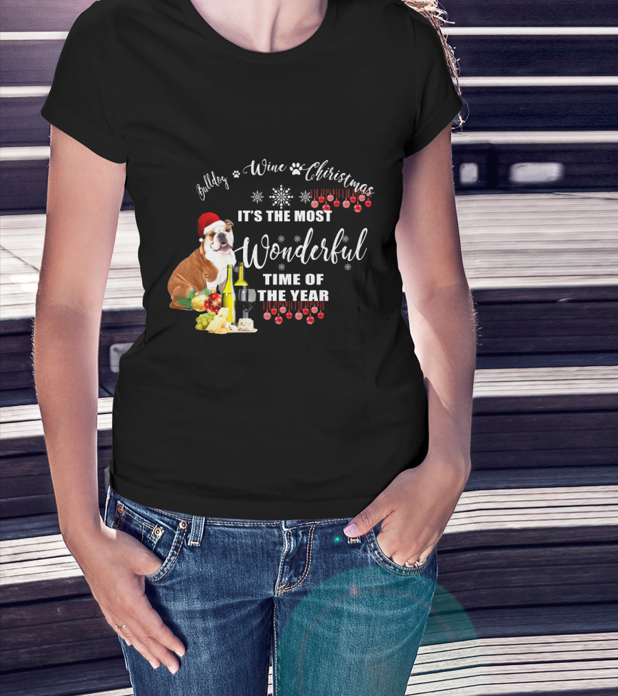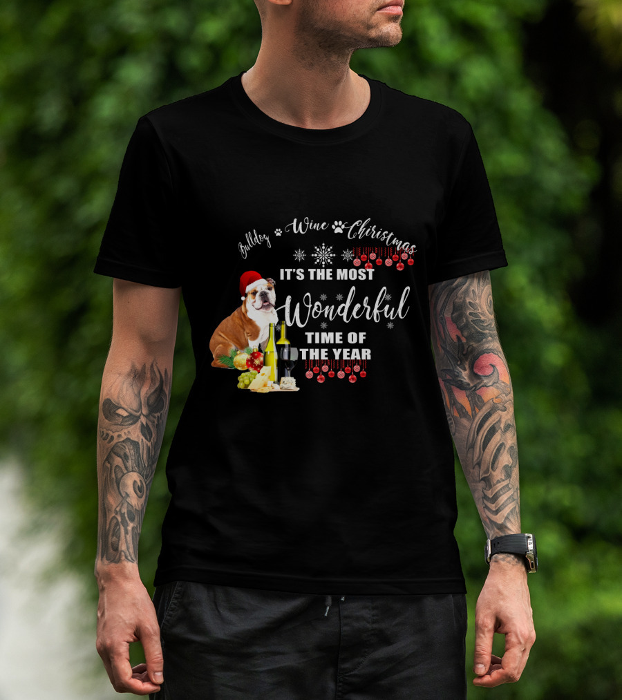 Bulldog Wine Christmas It's The Most Wonderful Time Of The Year T-Shirt