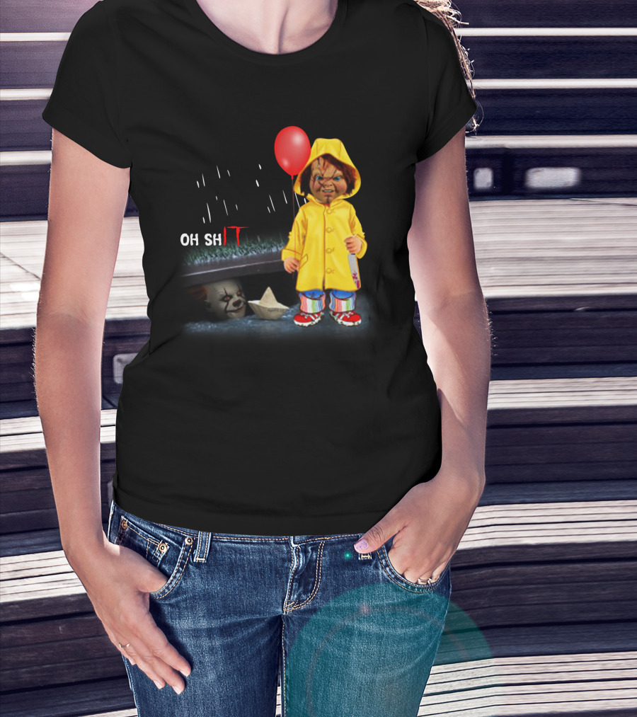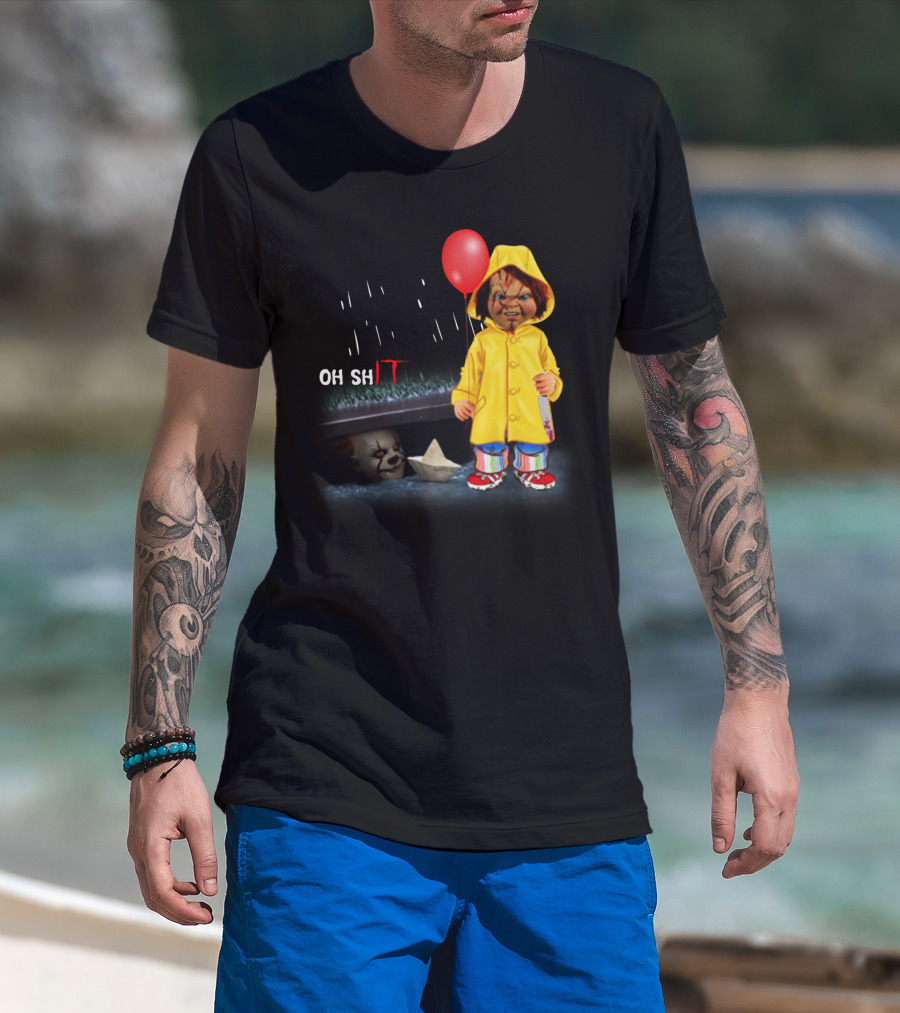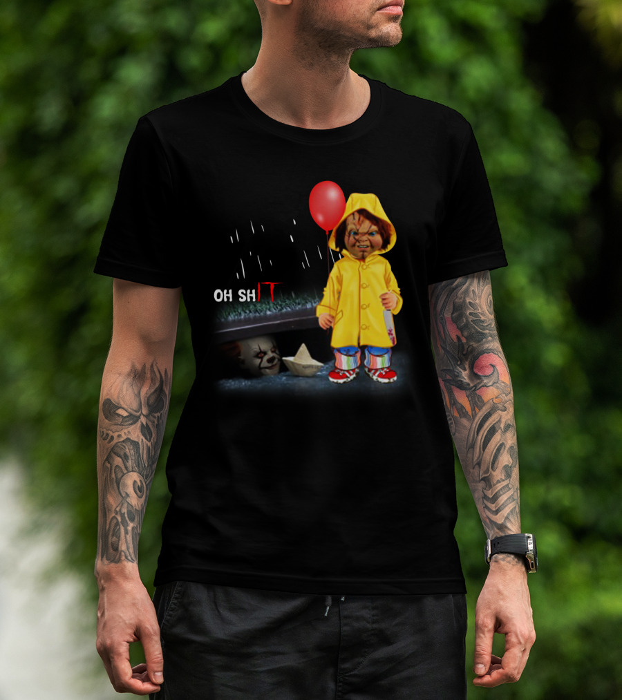 Pennywise And Chucky Oh ShIT Red Balloon Yellow Raincoat Storm Drain T-Shirt