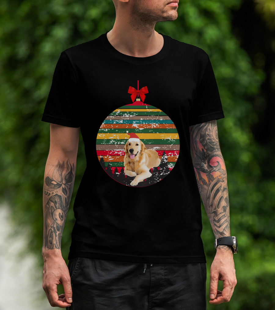 Christmas Vintage Golden Retriever Ornament With Santa Hat And Colorful Stripes T-Shirt