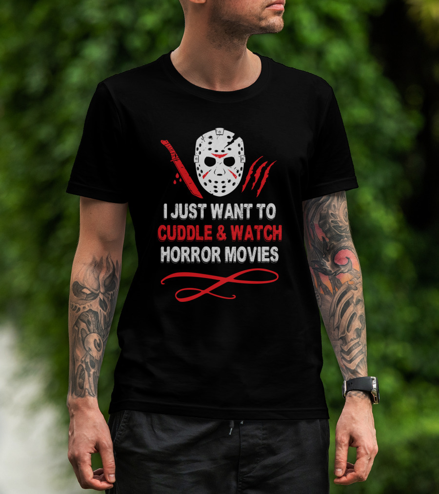 I Just Want To Cuddle And Watch Horror Movies Jason Mask Knife Claw Marks T-Shirt