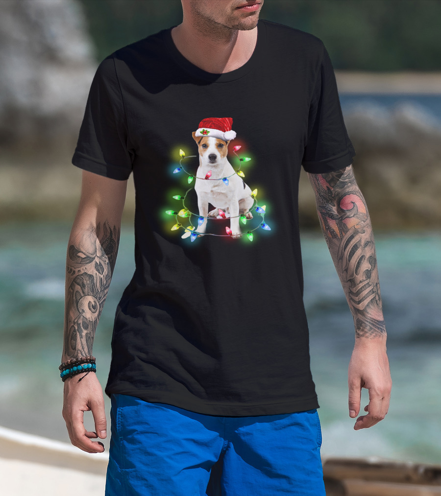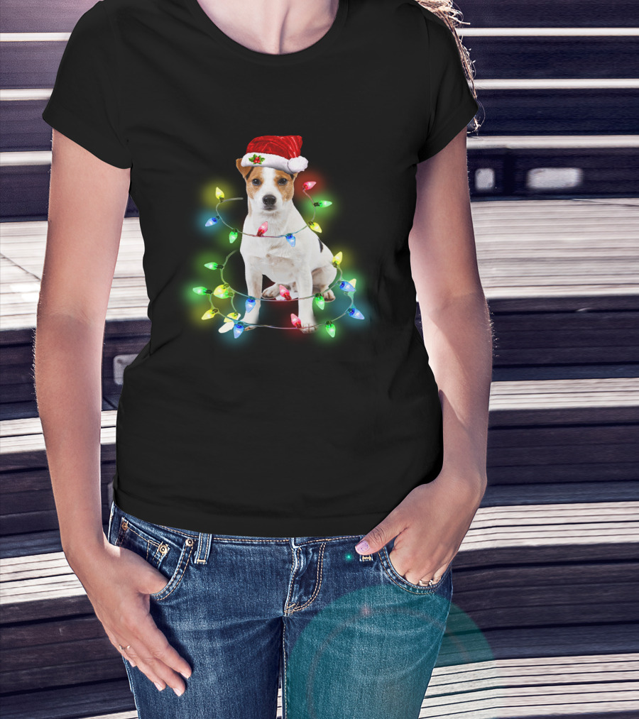 Jack Russell Terrier Holiday Lights Festive Santa Hat T-Shirt