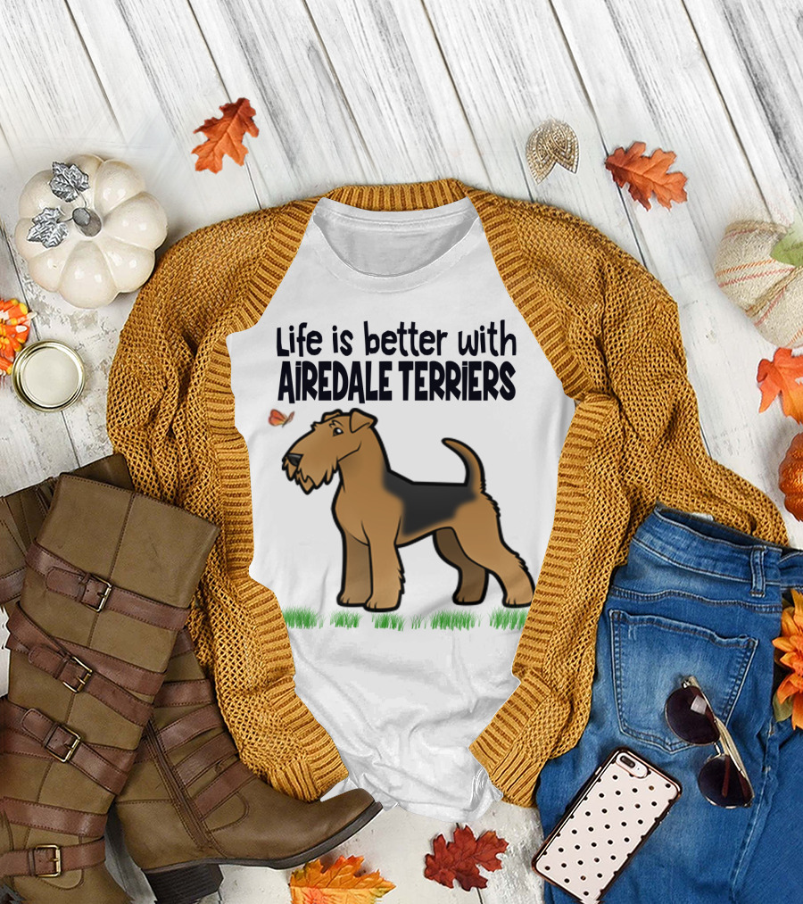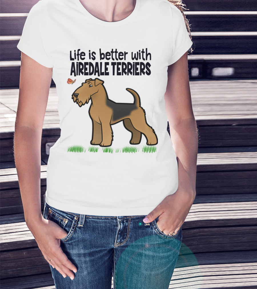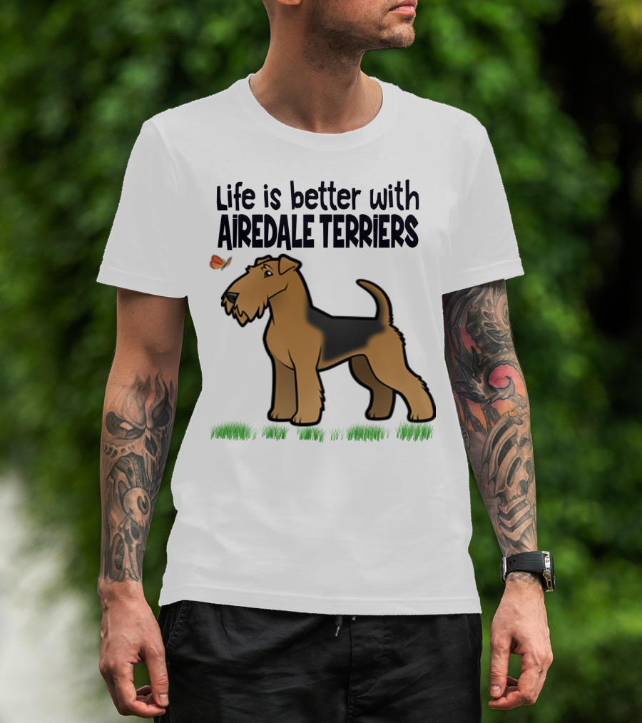 Life Is Better With Airedale Terriers Airedale Terrier Dog And Butterfly T-Shirt