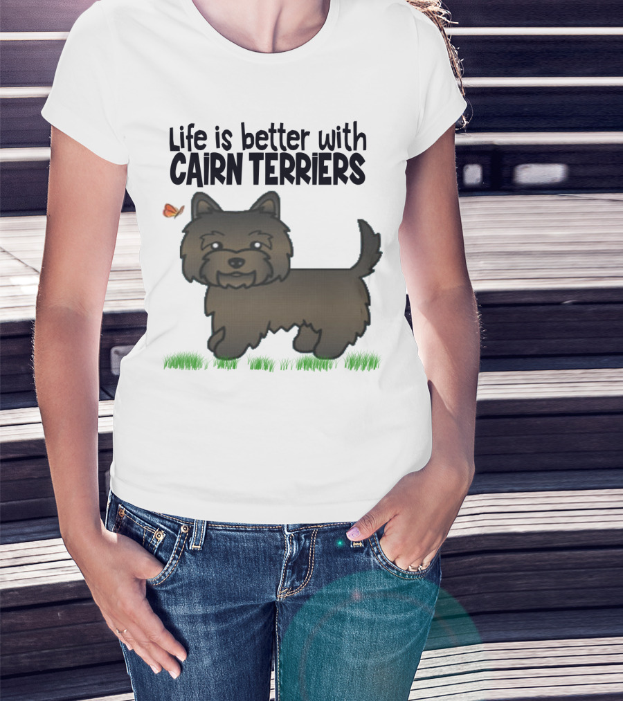 Life Is Better With Cairn Terriers Cute Dog And Butterfly T-Shirt
