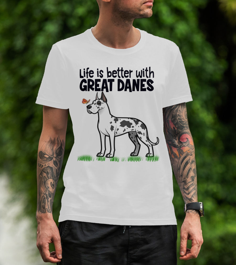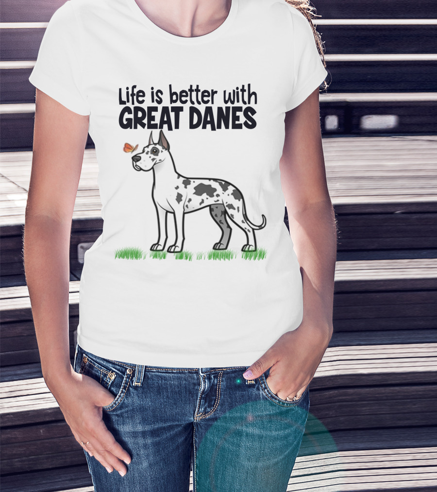 Life Is Better With Great Danes Illustrative Dog And Butterfly T-Shirt