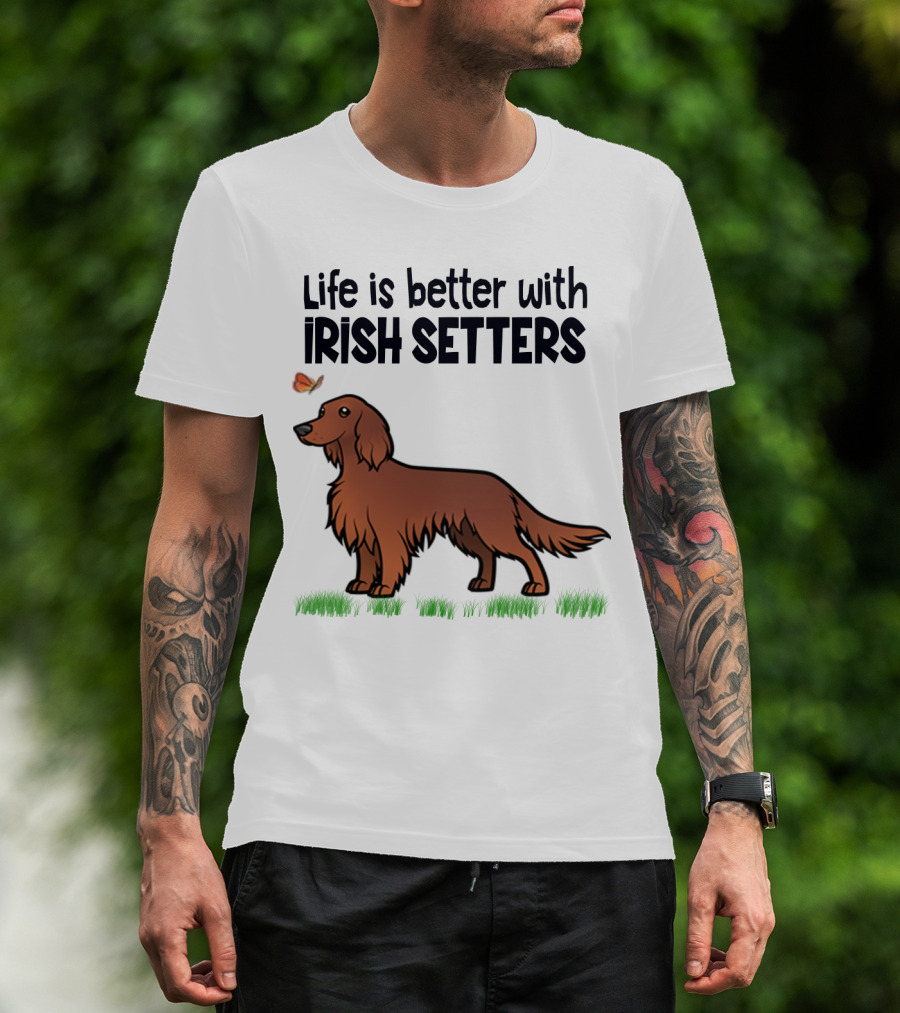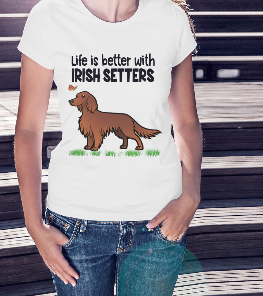 Life Is Better With Irish Setters Cute Dog And Butterfly T-Shirt
