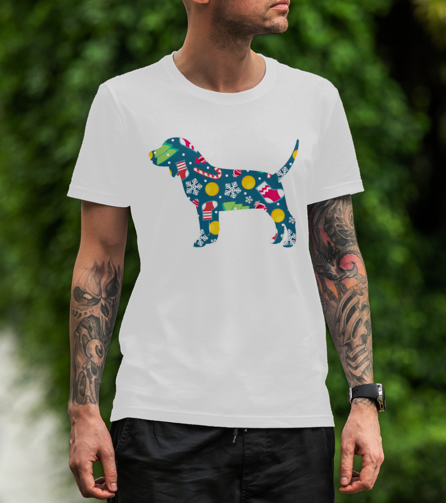 Dog Lover Christmas Beagle With Festive Floral T-Shirt