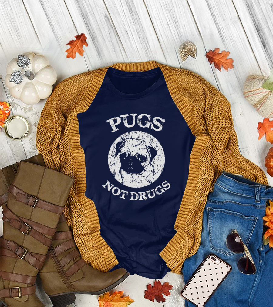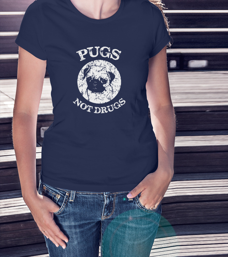Vintage Style Pugs Not Drugs With Distressed Pug Face T-Shirt