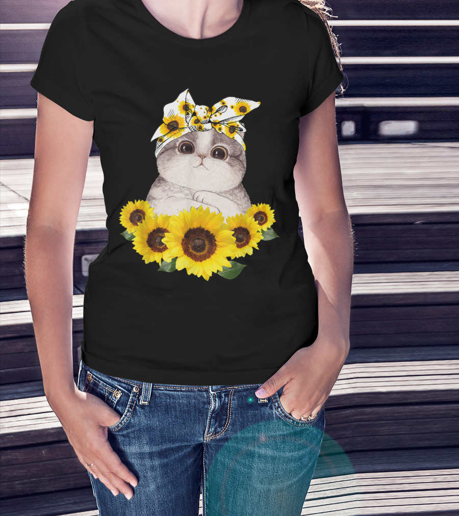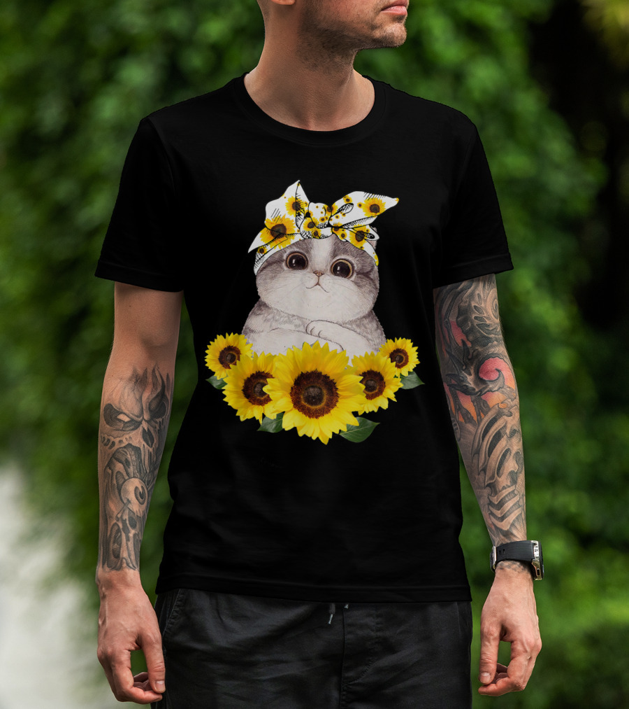 Sunflower Cat Headband Adorable Cats Lovers T-Shirt