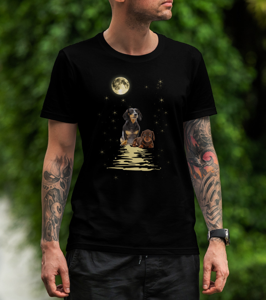 Dachshund Moonlight Reflections With Starry Night Sky T-Shirt