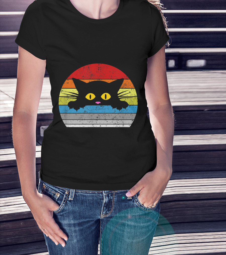 Vintage Rainbow Cat Peeking Retro 80s Style For Cat Lovers T-Shirt