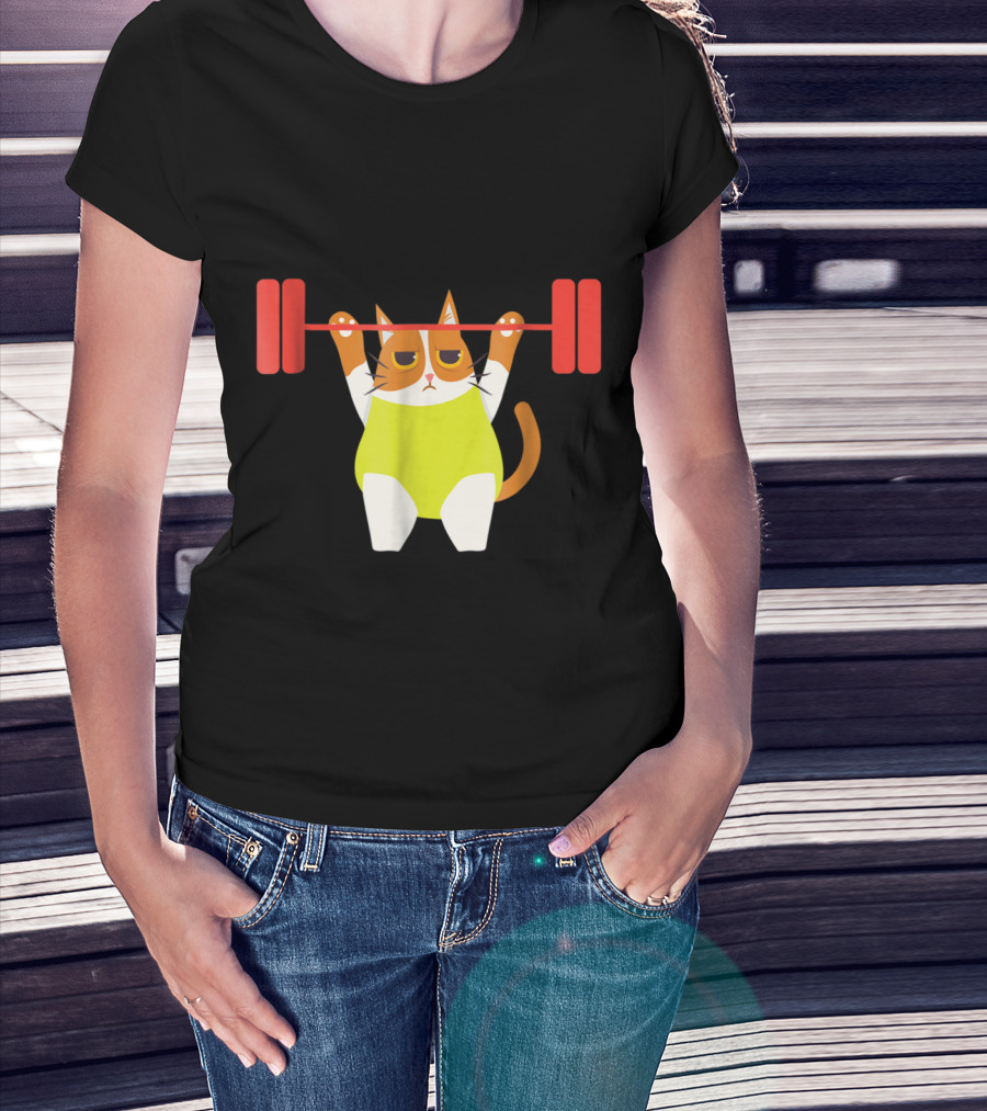 Playful Cat Weight Lifting Gym Humor For Fitness And Cat Lovers T-Shirt