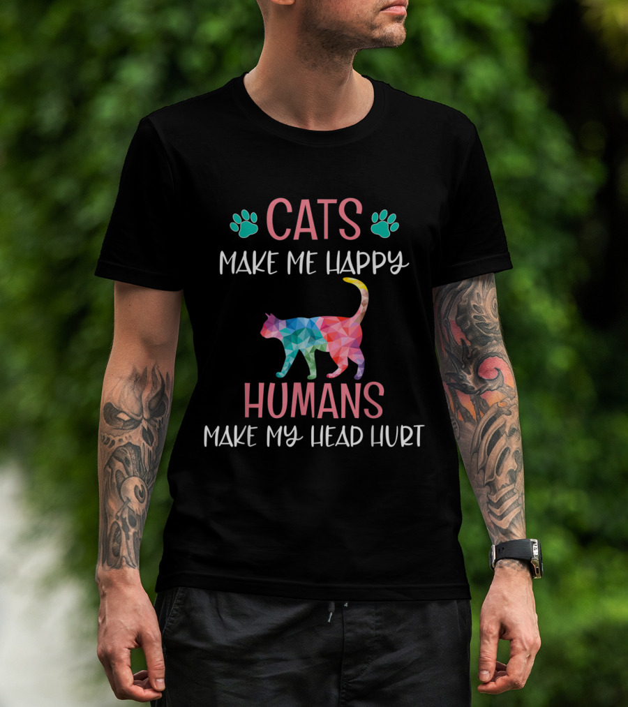Cats Make Me Happy Humans Make My Head Hurt Funny Rainbow Cat Mom Lover T-Shirt