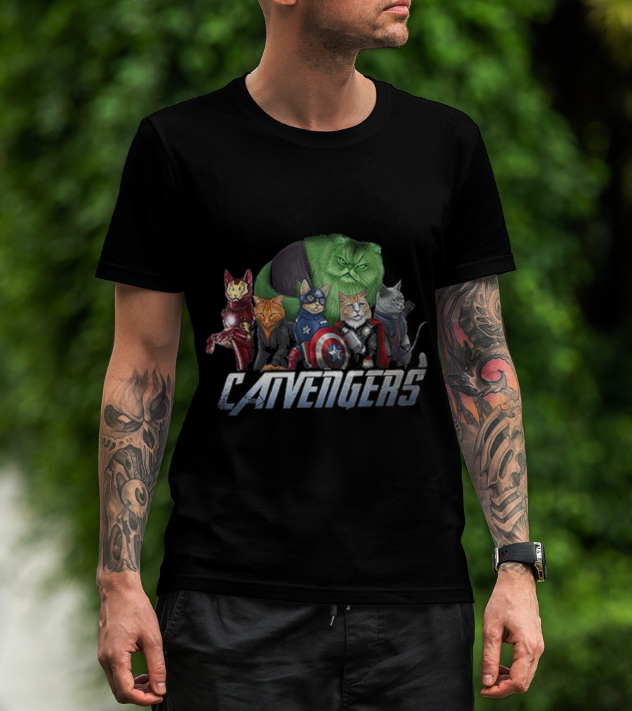Catvengers Parody Cat Lovers Pun Featuring Hero Cats In Cosplay T-Shirt