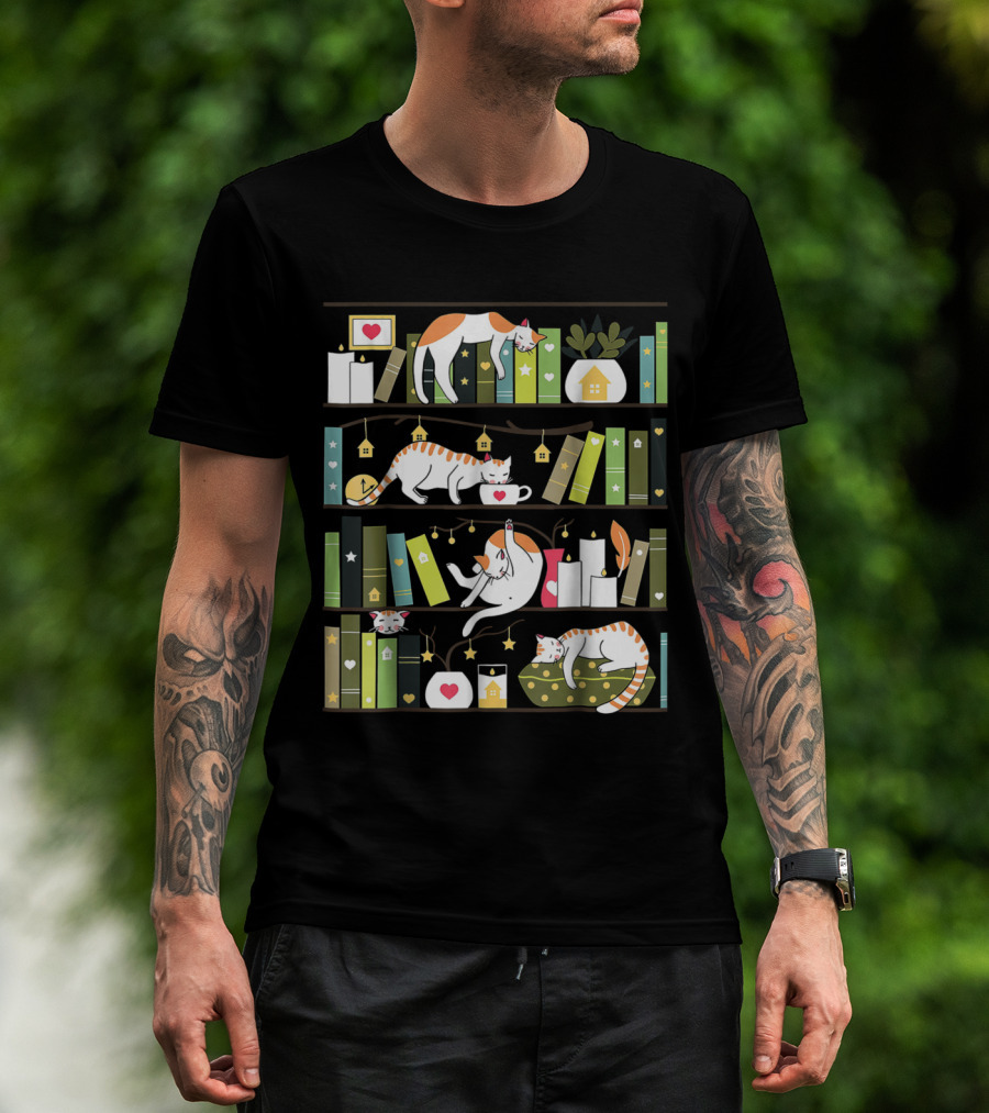 Library Cats Delightful Shelves Adorable Cats Book Lovers Day Charm T-Shirt