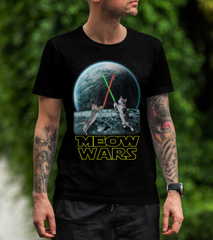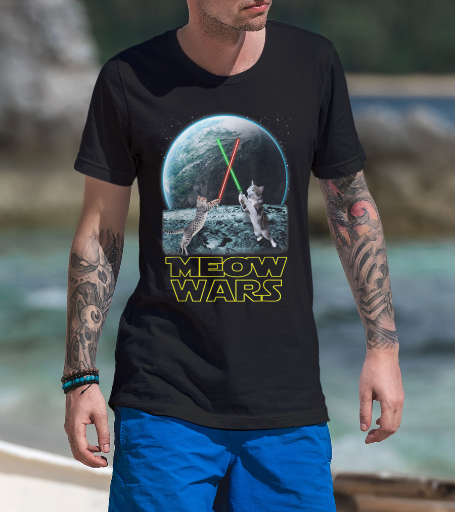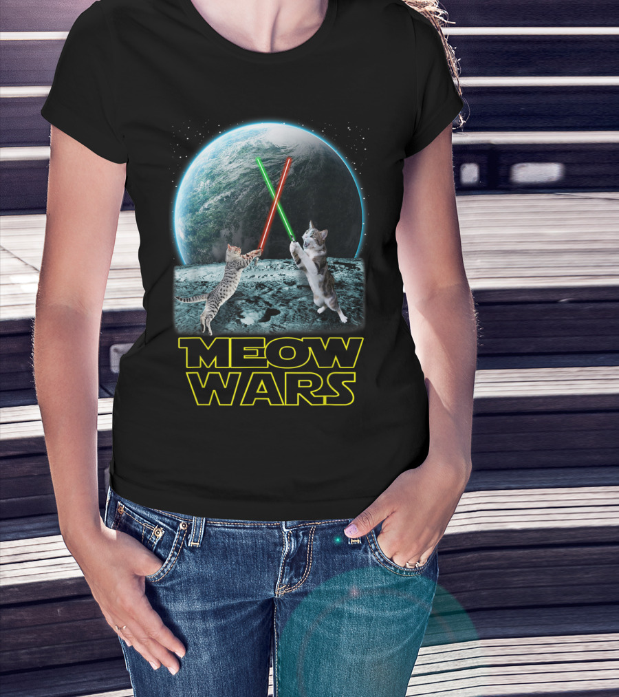 Meow Wars Funny Cats Lovers Galactic Duel With Light Sabers T-Shirt