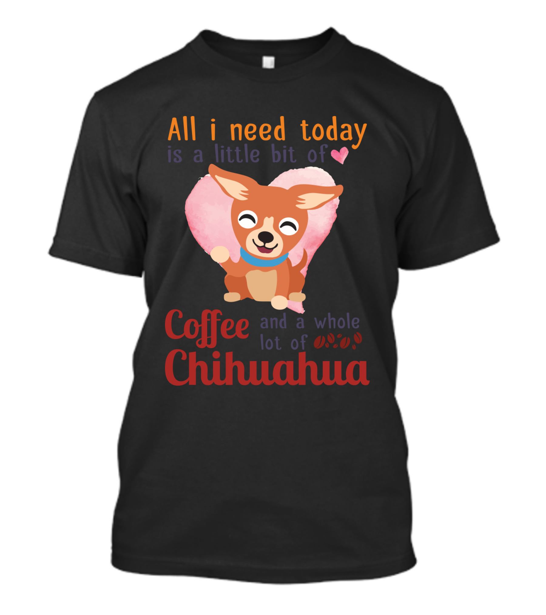 The All I Need Today Is A Little Bit Of Love Coffee And A Whole Lot Of Chihuahua T-shirt is designed for everyday wear and a consistent fit. Fabric is pre-shrunk ring-spun cotton with durable stitching. See the size chart below for exact measurements.