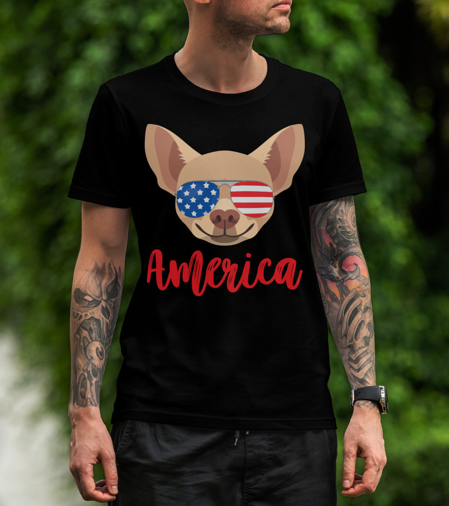 America Chihuahua Patriotic Sunglasses Dog T-Shirt