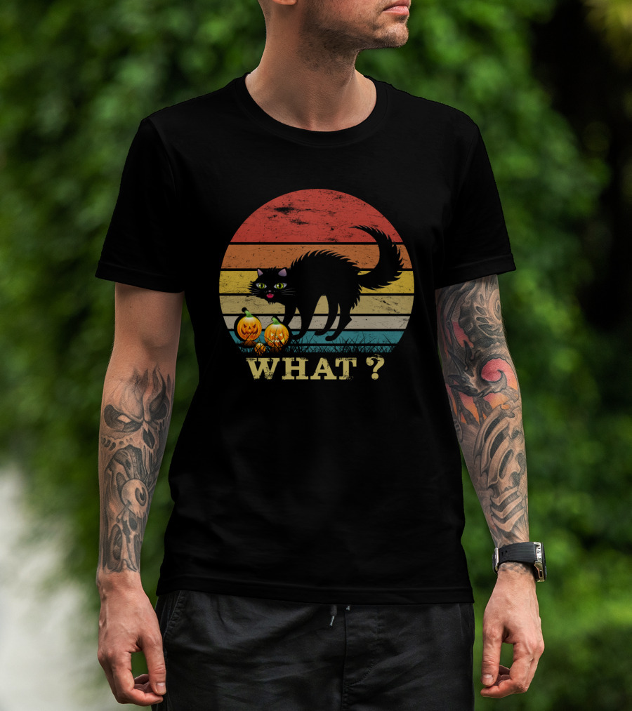 Black Cat What With Pumpkins Retro Sunset T-Shirt