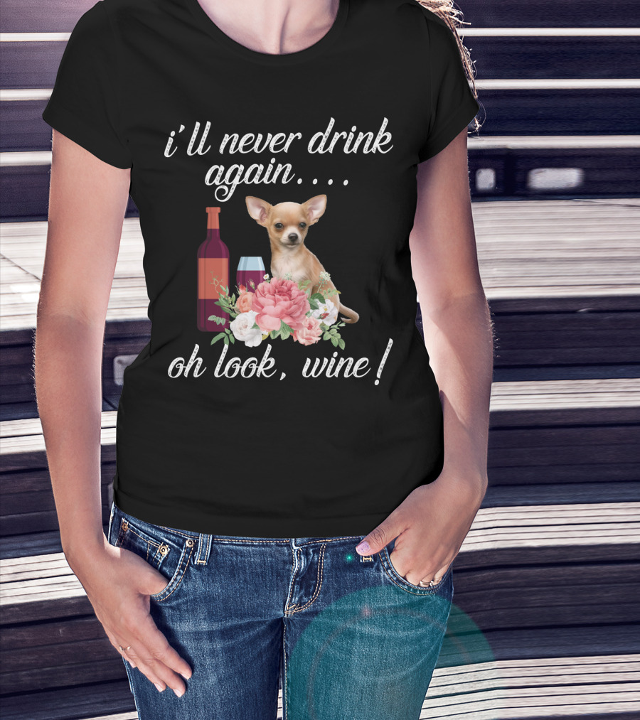 I'll Never Drink Again Oh Look Wine Chihuahua With Floral T-Shirt