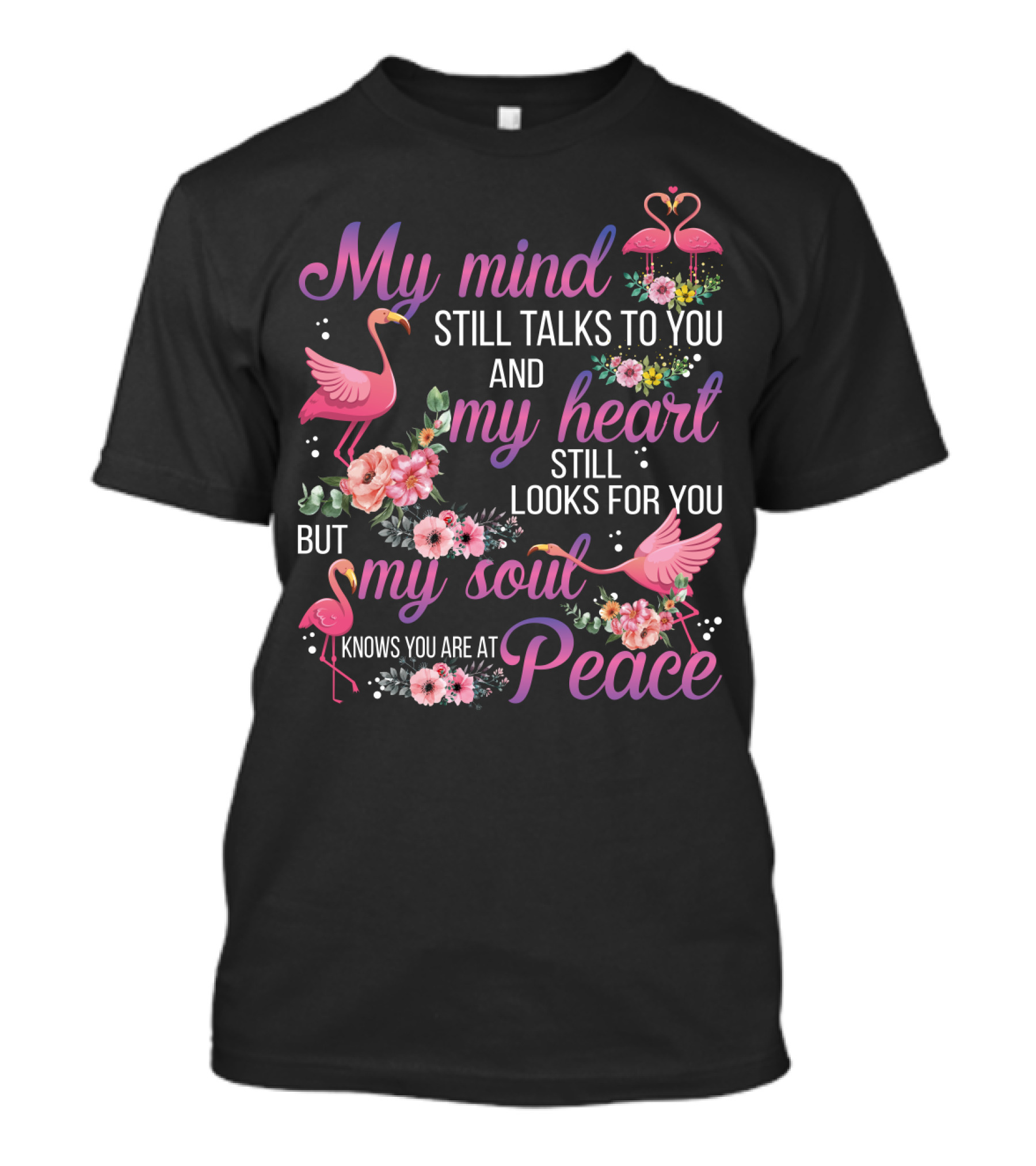 My Mind Still Talks To You And My Heart Still Looks For You But My Soul Knows You Are At Peace Flamingos T-Shirt