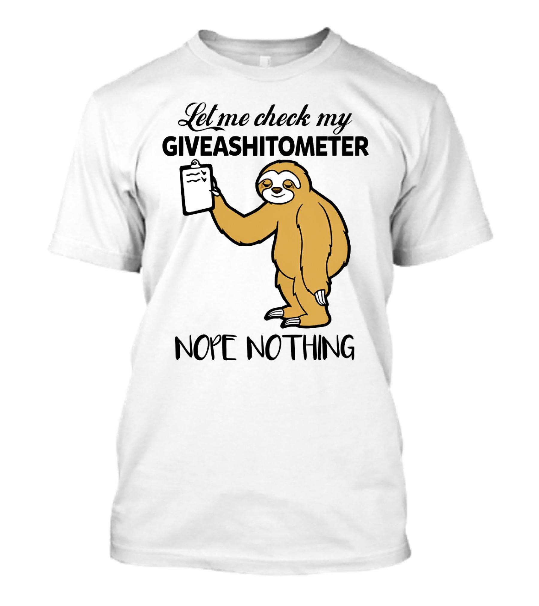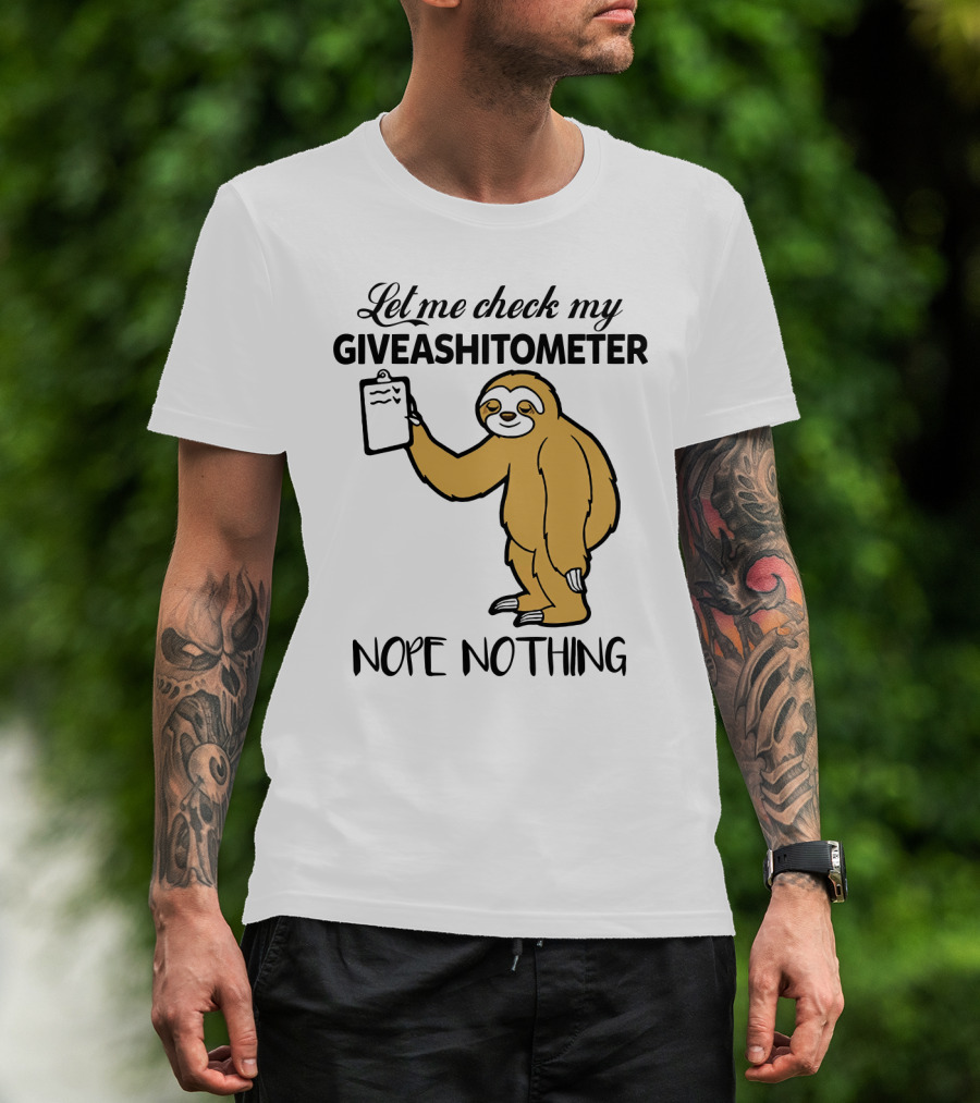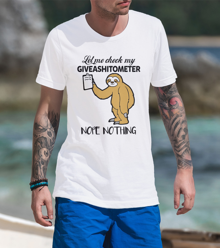 Let Me Check My Giveashitometer Nope Nothing Sloth Holding Clipboard T-Shirt