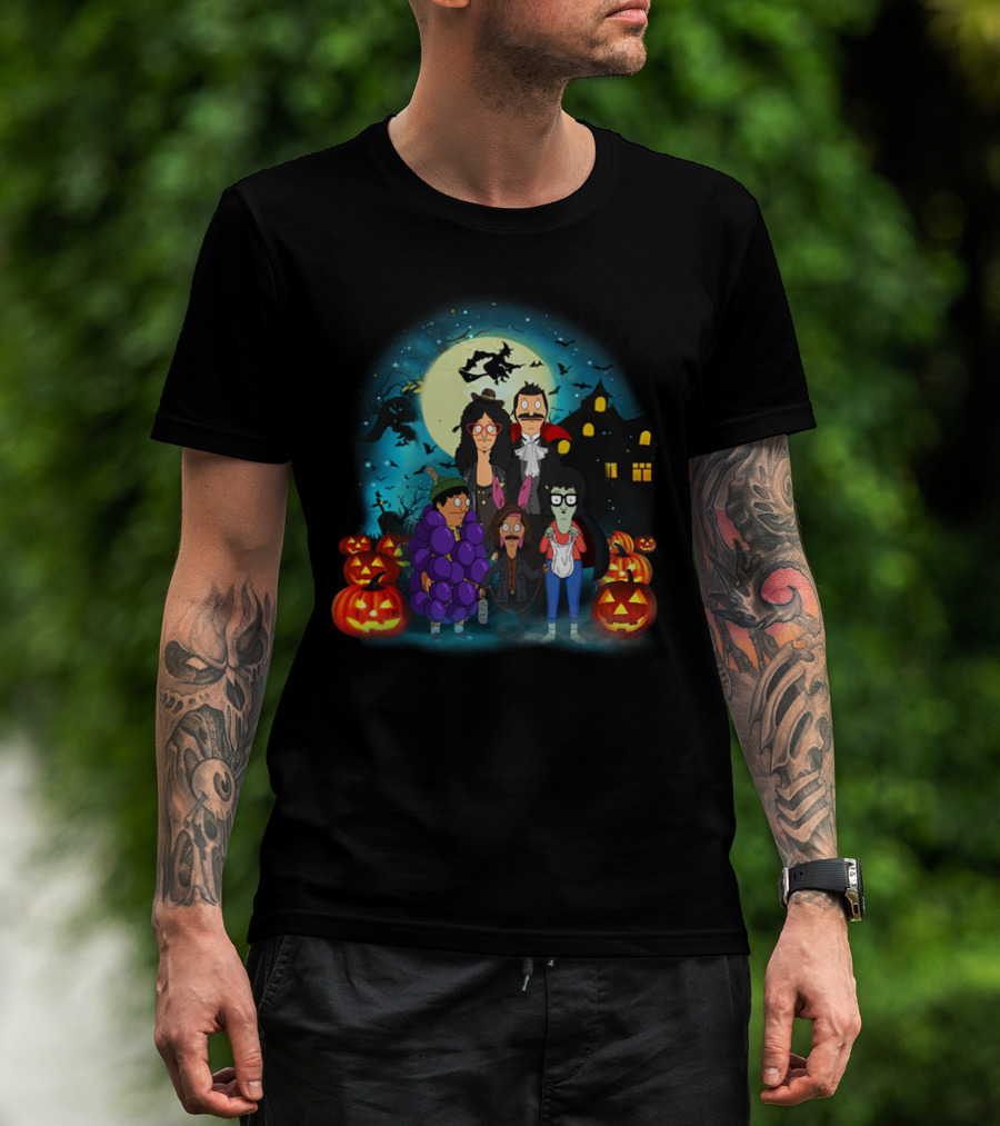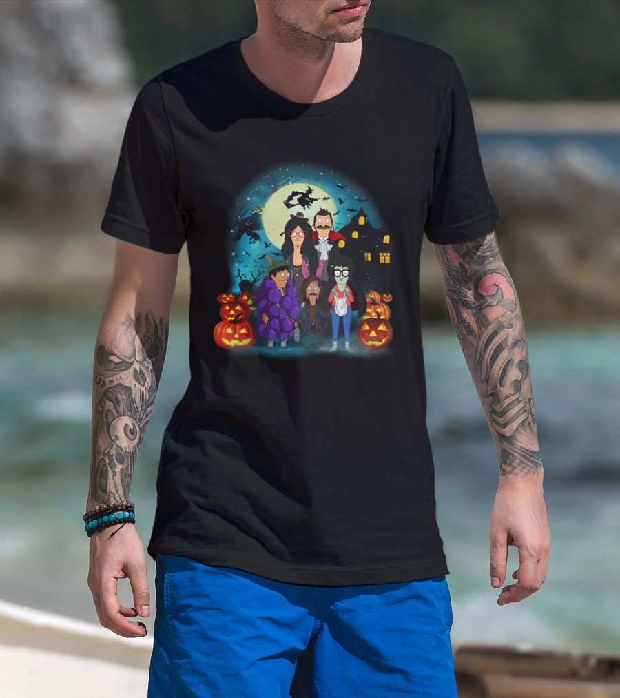 Bob's Burgers Belcher Family Halloween Costumes With Pumpkins And Haunted House T-Shirt