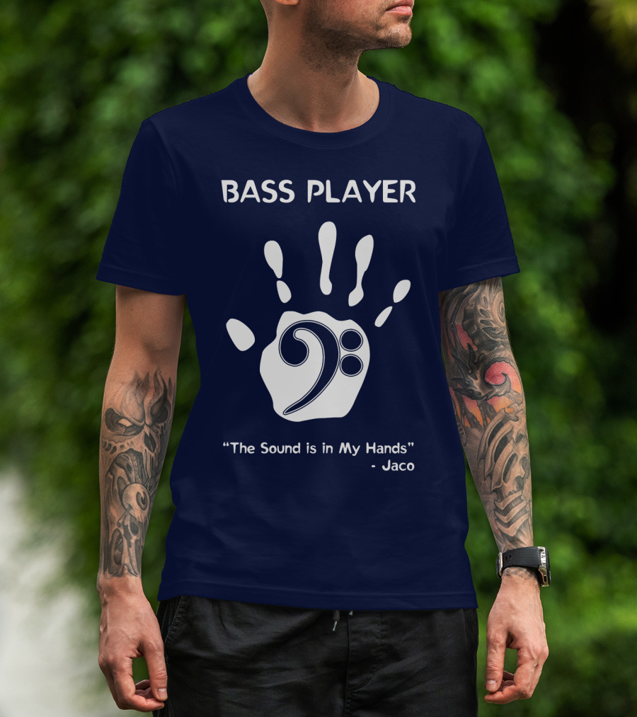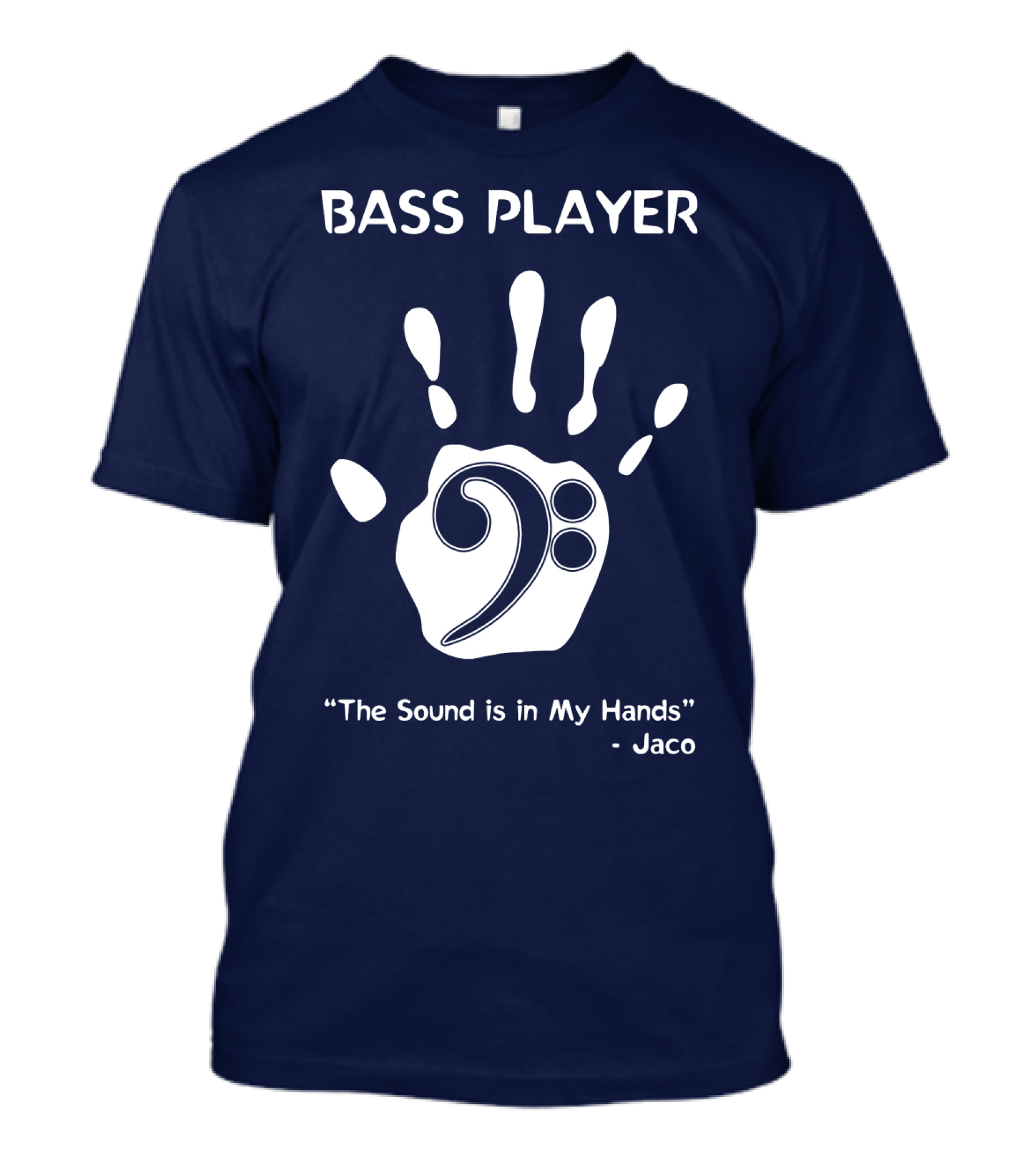 The Bass Player The Sound is in My Hands Jaco Handprint Clef T-shirt is designed for everyday wear and a consistent fit. Fabric is pre-shrunk ring-spun cotton with durable stitching. See the size chart below for exact measurements.