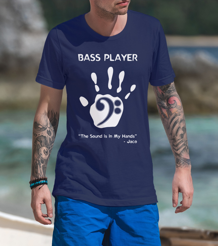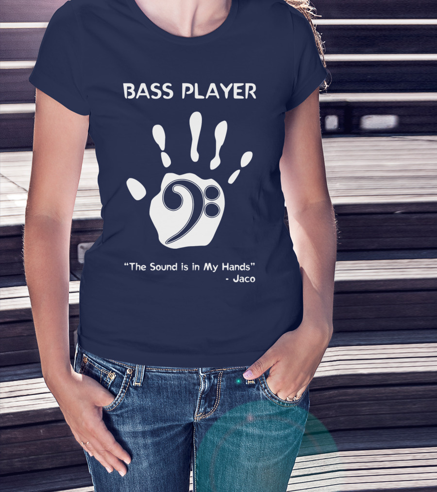 Bass Player The Sound Is In My Hands Jaco Handprint Clef T-Shirt