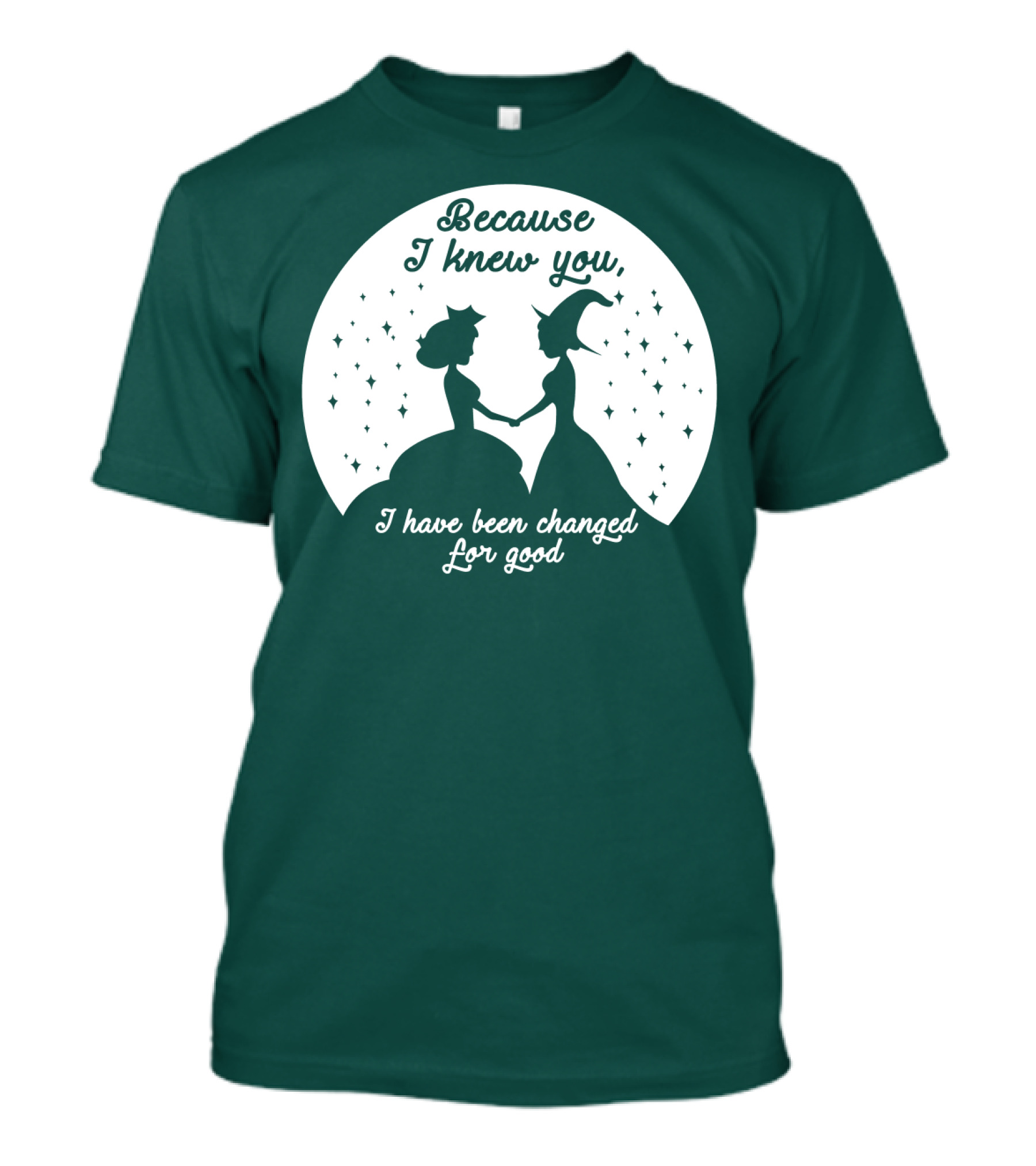 The Because I Knew You I Have Been Changed For Good Silhouettes Stars T-shirt is designed for everyday wear and a consistent fit. Fabric is pre-shrunk ring-spun cotton with durable stitching. See the size chart below for exact measurements.