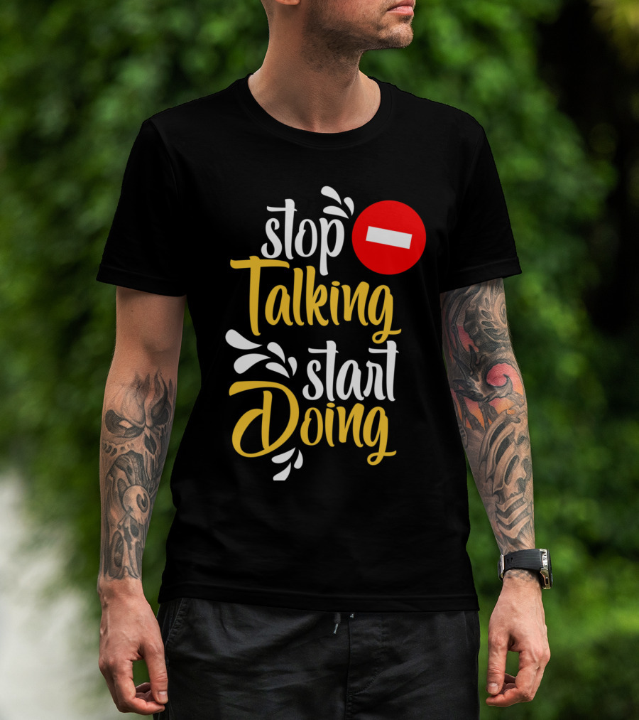 Stop Talking Start Doing Hand Drawn Typography Motivational Inspirational T-Shirt