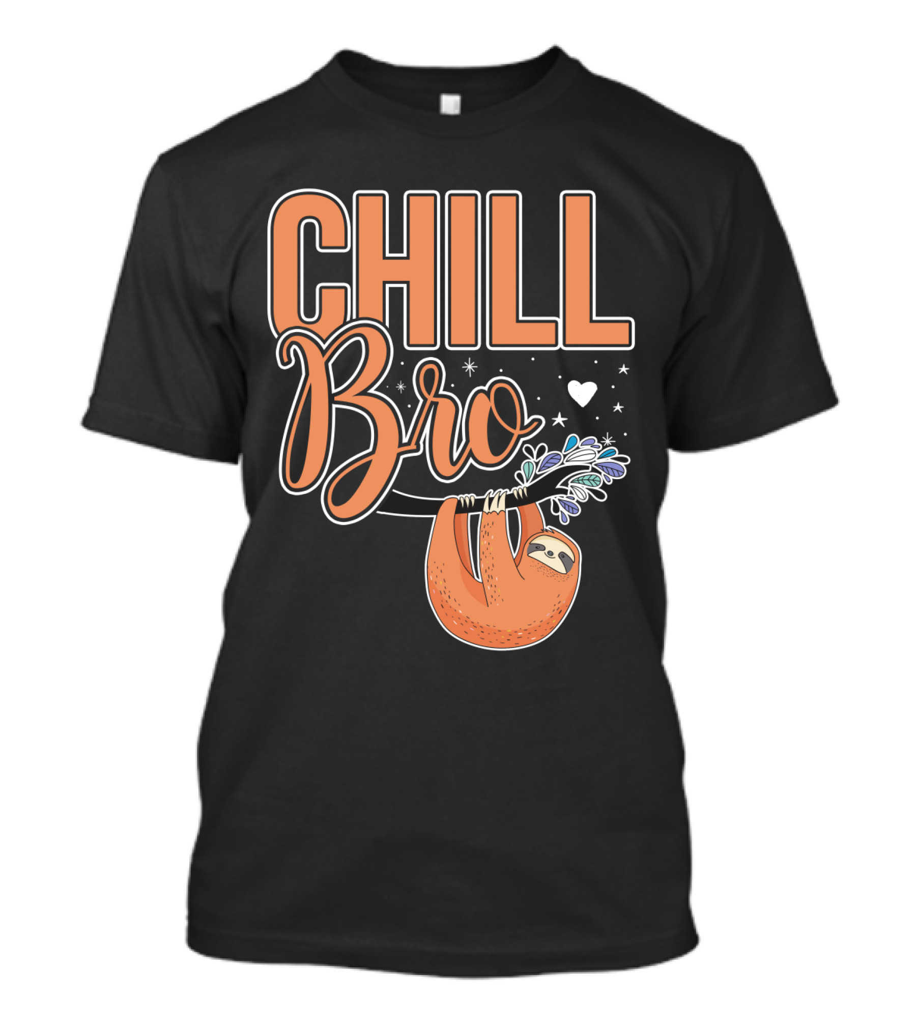 The CHILL BRO Sloth Hanging with Heart and Stars T-shirt is designed for everyday wear and a consistent fit. Fabric is pre-shrunk ring-spun cotton with durable stitching. See the size chart below for exact measurements.