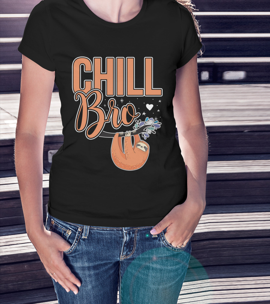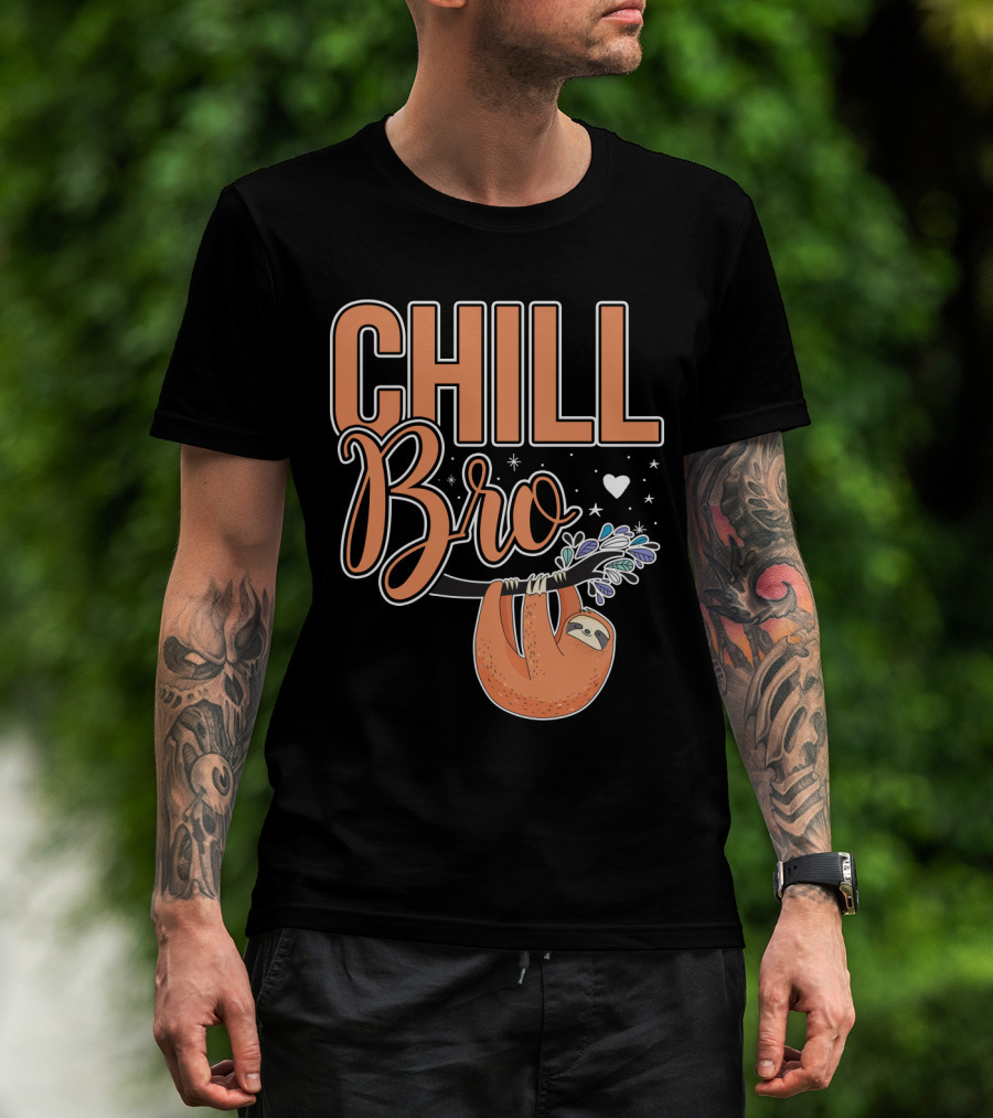 CHILL BRO Sloth Hanging With Heart And Stars T-Shirt