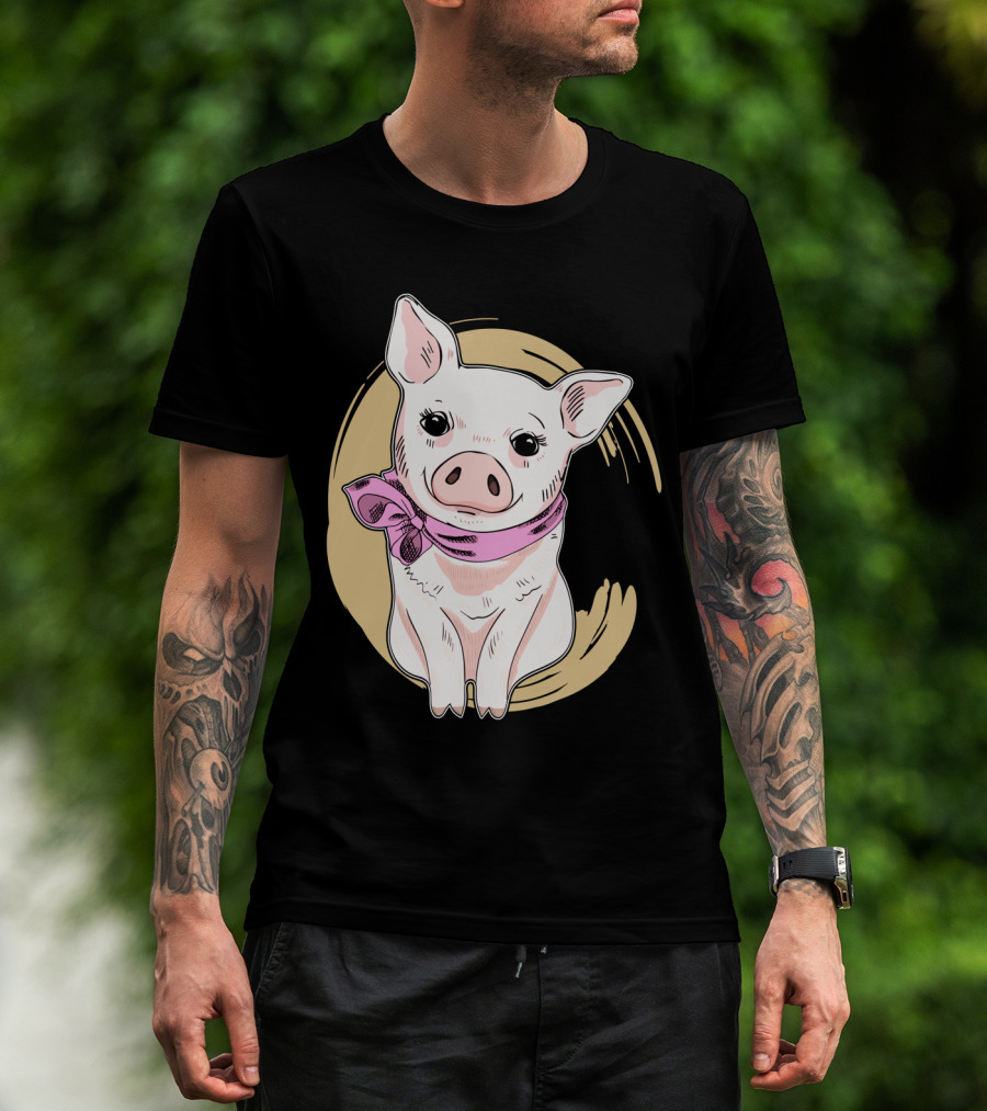 The Funny Pig Wearing Pink Scarf T-shirt is designed for everyday wear and a consistent fit. Fabric is pre-shrunk ring-spun cotton with durable stitching. See the size chart below for exact measurements.