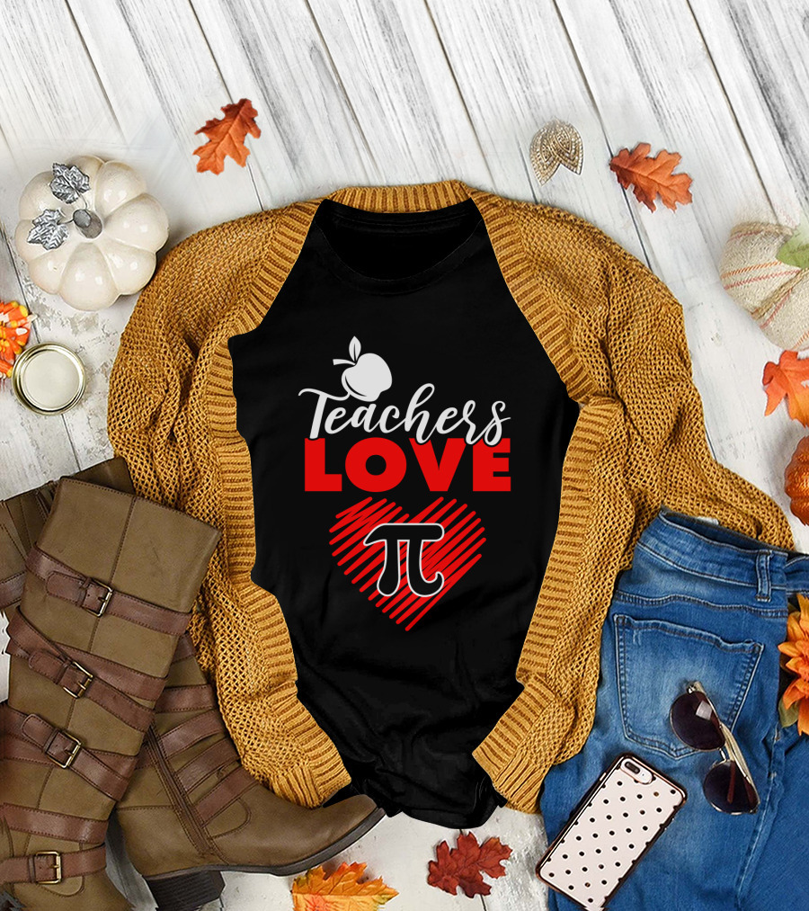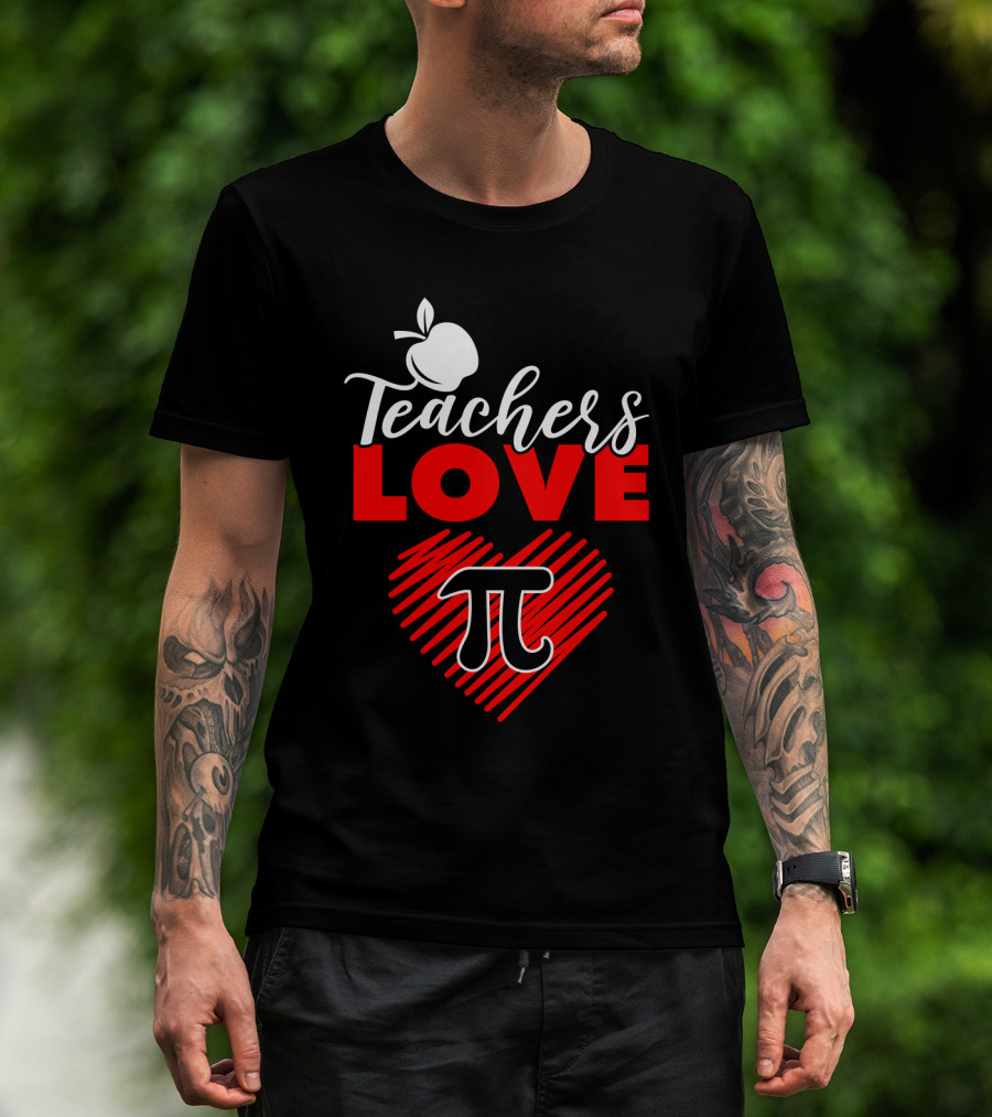 The Teachers Love Pi Math Heart Apple T-shirt is designed for everyday wear and a consistent fit. Fabric is pre-shrunk ring-spun cotton with durable stitching. See the size chart below for exact measurements.