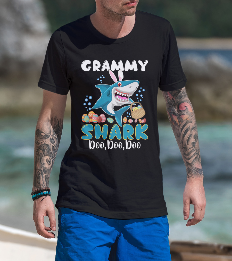 Grammy Shark Doo Doo Doo Bunny Ear Easter Egg Hunt T-Shirt