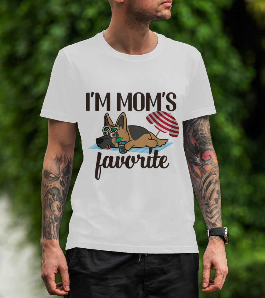 The I'm Mom's Favorite Shepherd Funny Cute Dog Under Umbrella T-shirt is designed for everyday wear and a consistent fit. Fabric is pre-shrunk ring-spun cotton with durable stitching. See the size chart below for exact measurements.