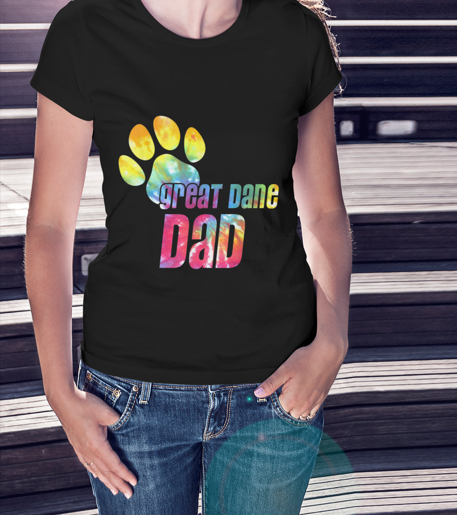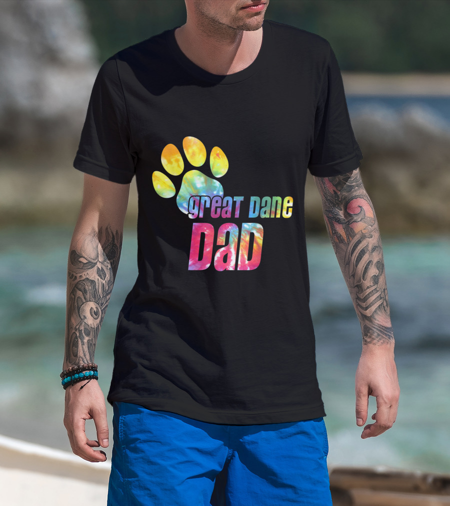 Great Dane Dad Tie Dye Paw Father's Day Dog Lovers T-Shirt