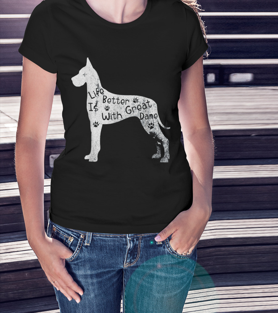 Life Is Better With Great Dane Vintage Puppy Lover T-Shirt